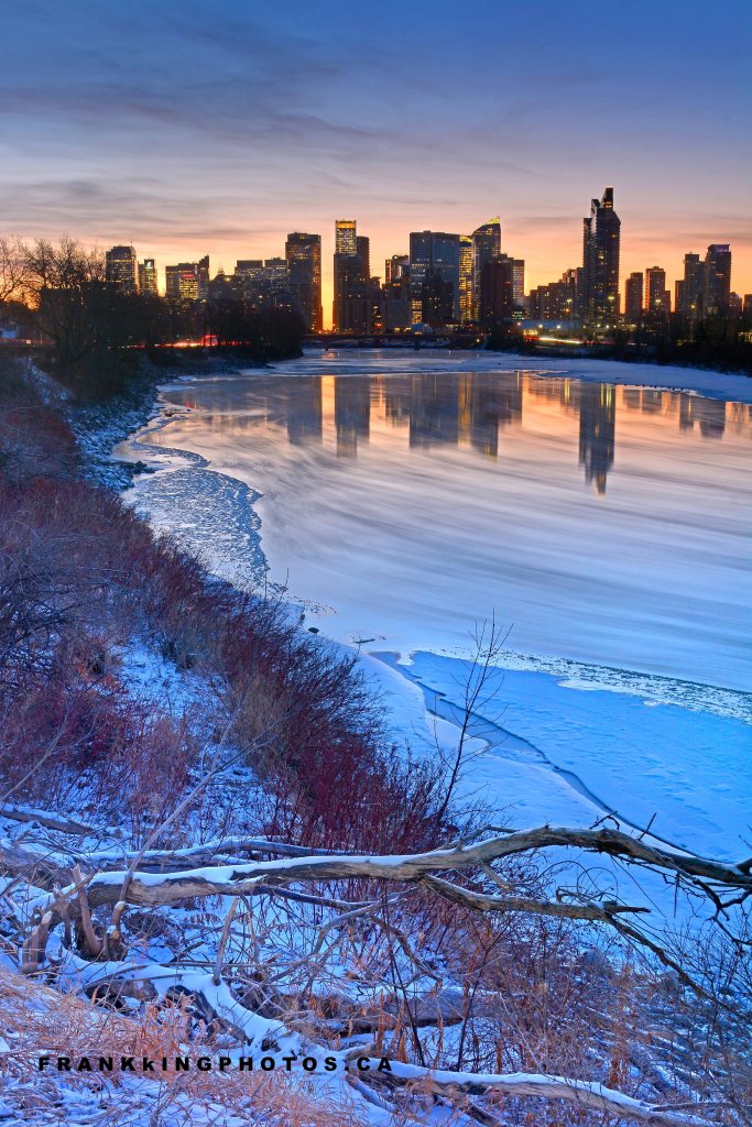 I got up early and went to the Bow River, which flows through this western Canadian city, hoping to get a compelling winter sunrise reflected in the water. I think this 25-second exposure worked out pretty well. Do you agree?