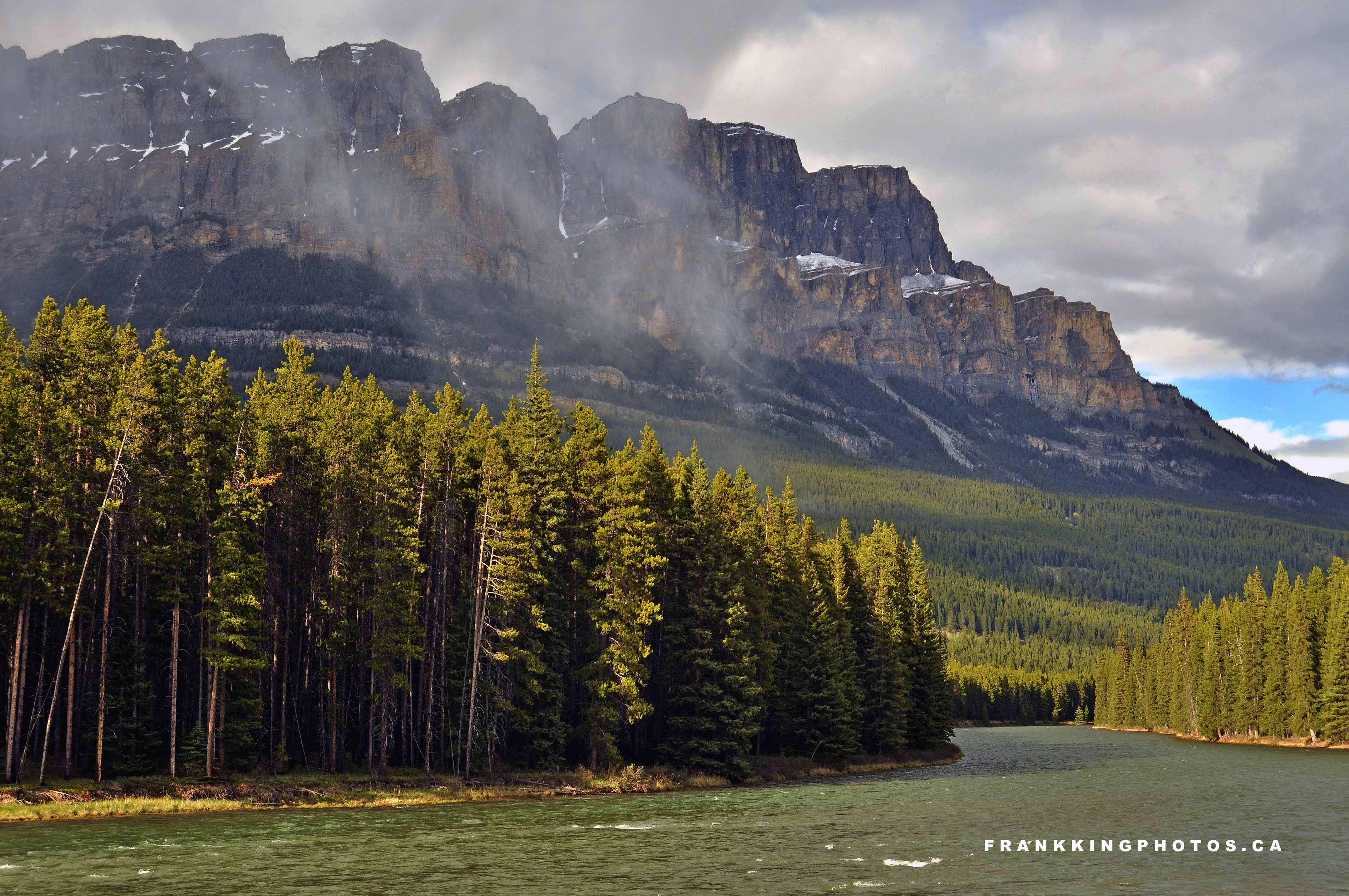 I photographed this along the edge of the Trans Canada Highway in one of Canada’s most iconic national parks. That’s Castle Mountain soaring above the trees. I could have gotten a higher perspective by crossing the road (away from the river) and climbing a hill, but no matter how I tried, I couldn’t keep the road and a few distracting shrubs along the river edge out of the composition. So I opted for this view instead, relying on the fabulous evening sky to make the picture memorable.