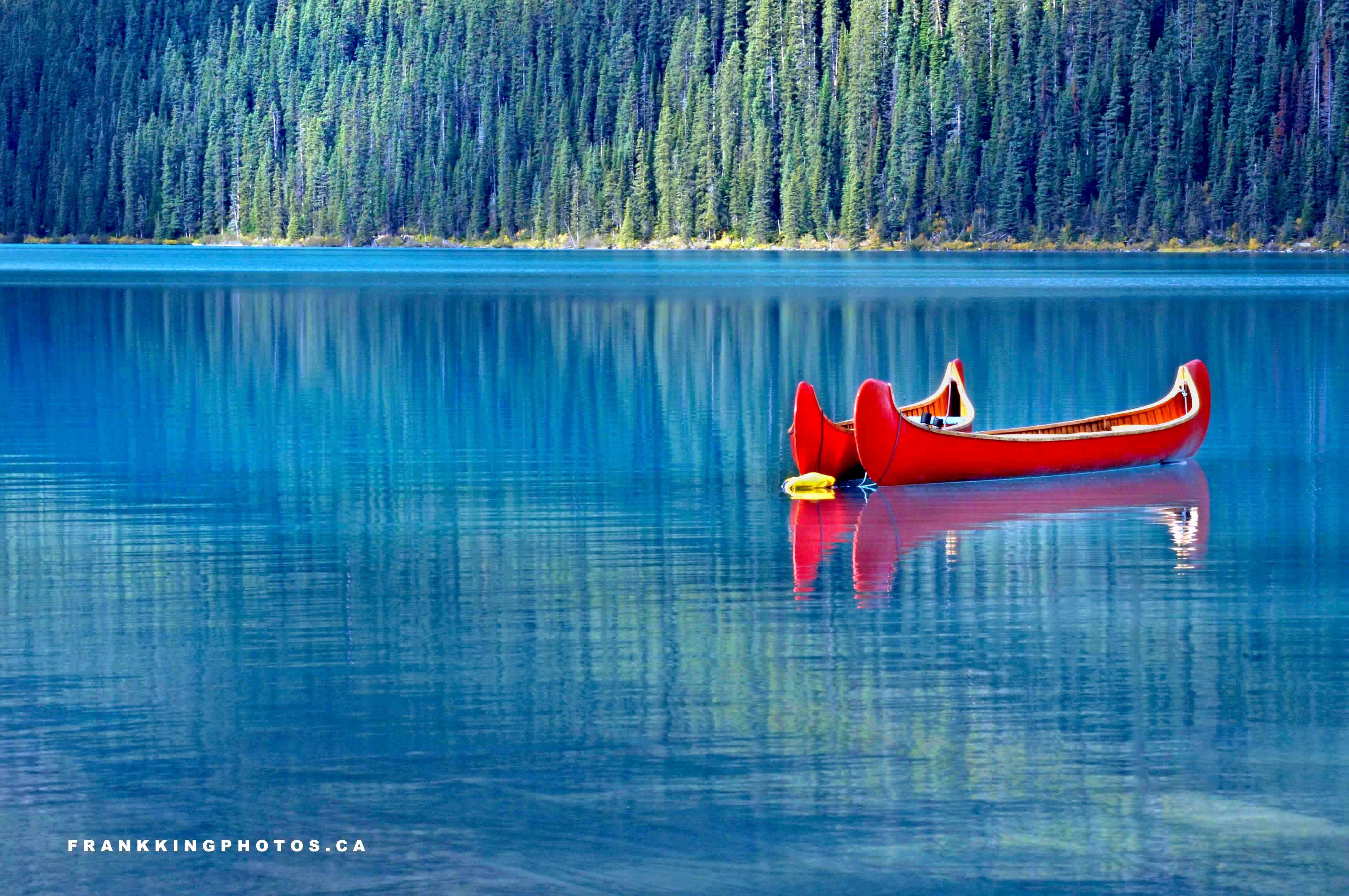 CANOES ON LAKE LOUISE, BANFF NATIONAL PARK, ALBERTA