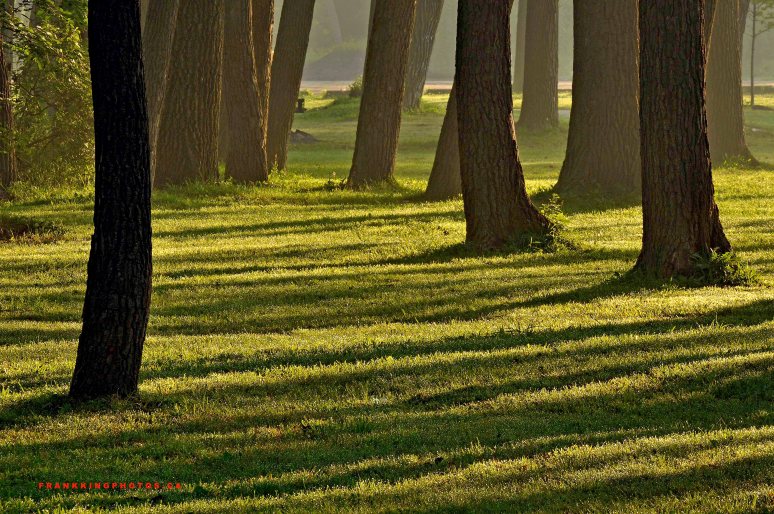 It was a humid summer dawn in Canada’s largest city when I stopped in this park, along the shores of Lake Ontario, to make pictures. The magnificent mix of light and and shadow, played out on the dewy grass and amongst the hundred-year-old tree trunks, drew my camera away from the water to make photographs like this.
