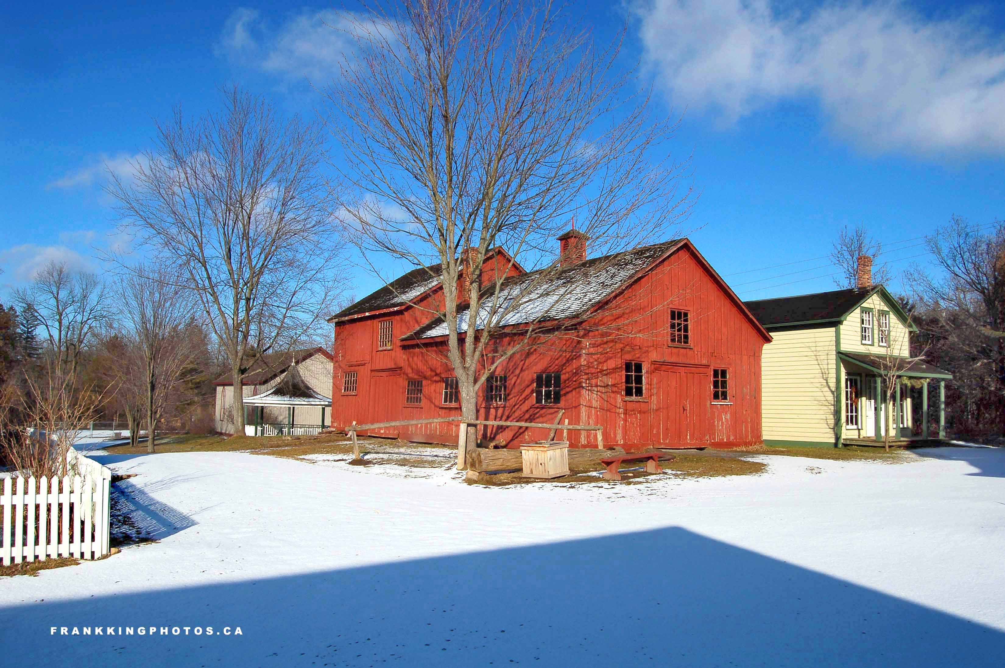 I was fortunate to come upon this picturesque local tourist attraction, northeast of Toronto (Canada’s largest city) after a dusting of snow and before anyone else could walk through and spoil the untouched beauty of this scene. I recall trying to find a good composition with the red building, then stepping back until the strong graphic of the shadow entered the scene and that’s when the photo came together.