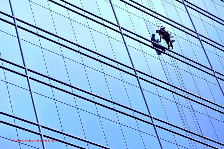 Would you want to be doing this at 7 a.m. on a Sunday? Alone and with nothing but a few ropes holding you up? The weather was grey and I was not hopeful for good photographs when I spotted this dude doing his thing. I detoured, parked on the street below and hand-held my Nikon D90 and 70-300 mm. lens to make this composition, twisting the camera to create diagonal lines. I don’t think he ever knew he was being photographed.