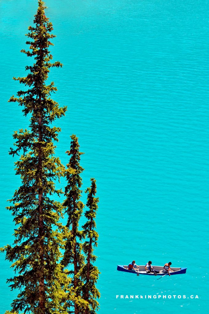 A mid-summer afternoon is usually a bland time for photography, given the harsh light of that time of day. The advantage, however, is popular areas have lots of people to include in compositions. That was the case at this astounding lake in the Canadian Rocky Mountains.