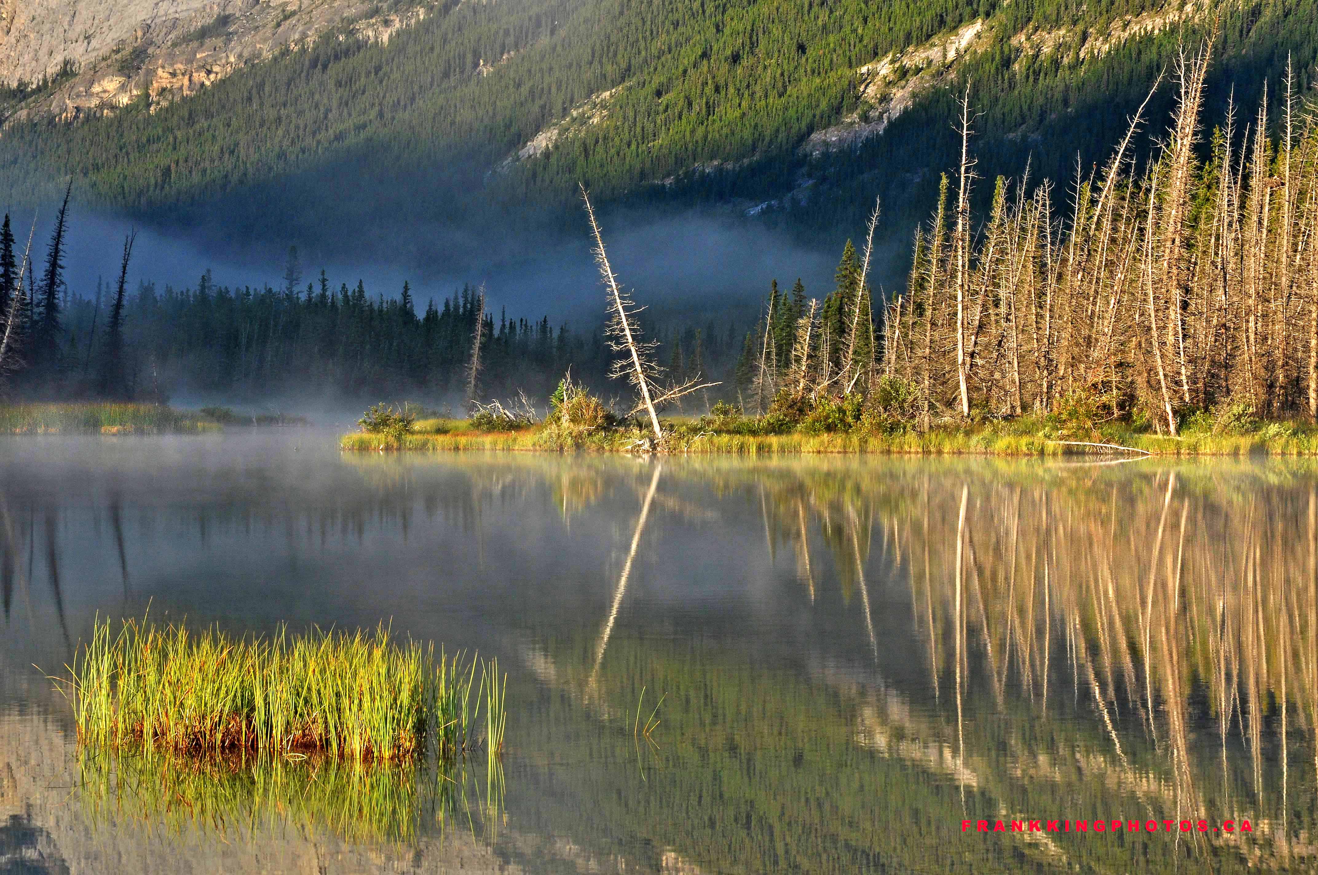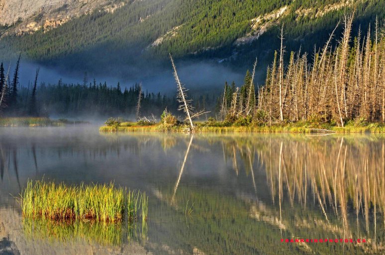 I wanted to photograph there during summer, so my wife and I camped at Abraham Lake recently. Ironically, it was this nameless pond across the road from the lake that caught my attention.