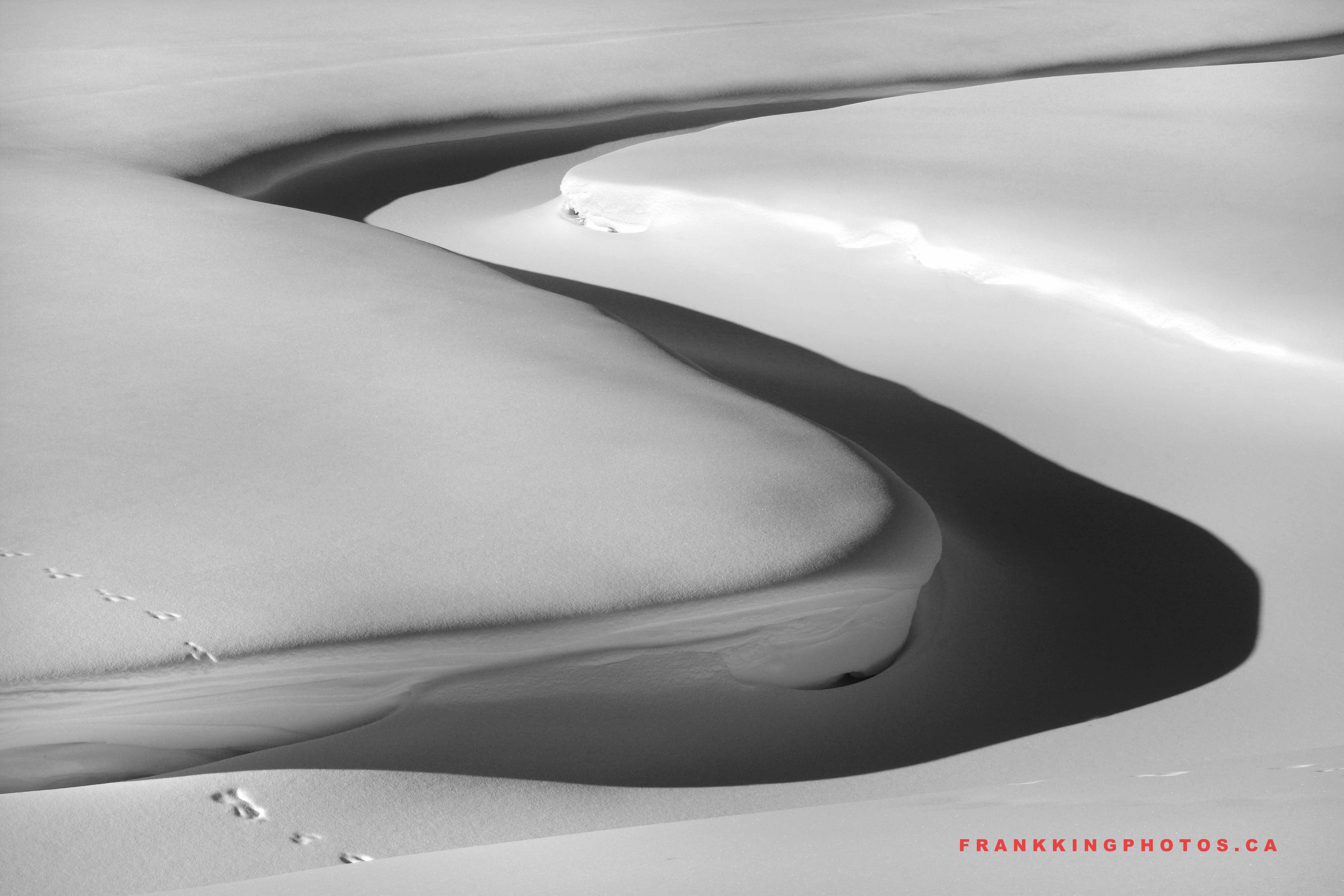 At one point, the temperature on the thermometer inside my van said it was -40 outside. Yikes. But there was no wind, so I could tolerate spending about 10 minutes outside the van working with this amazing example of God’s artistry in the Canadian Rocky Mountains. Nikon D7100, tripod, 70-300 mm. lens. (A similar view of this spot, in colour, can be seen here: http://bit.ly/1lrNrK3)