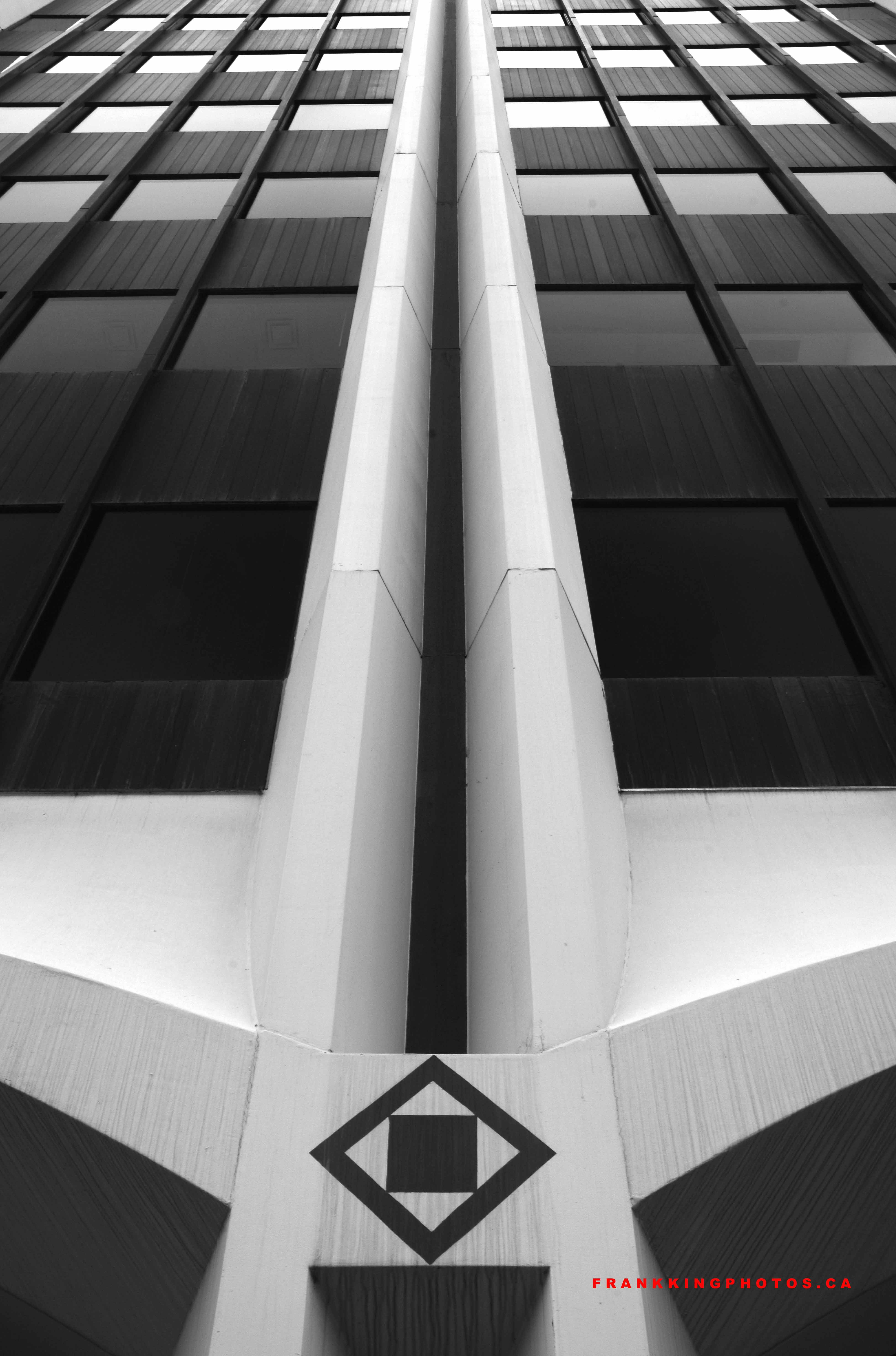 The square-inside-a-diamond grabbed my attention, as well as the strong white and dark design of this building in the western Canadian city of Calgary, Alberta. A polarizing filter helped boost the contrast.