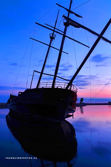 “Unfortunately, he didn’t have the funds to realize his dream, and the ship sat in Jordan Harbour, near St. Catharines for years, unused. In 2003, the ship was destroyed by what police called a suspicious fire, most likely the work of arsonists. The burned-out hull still sits in the harbour.”