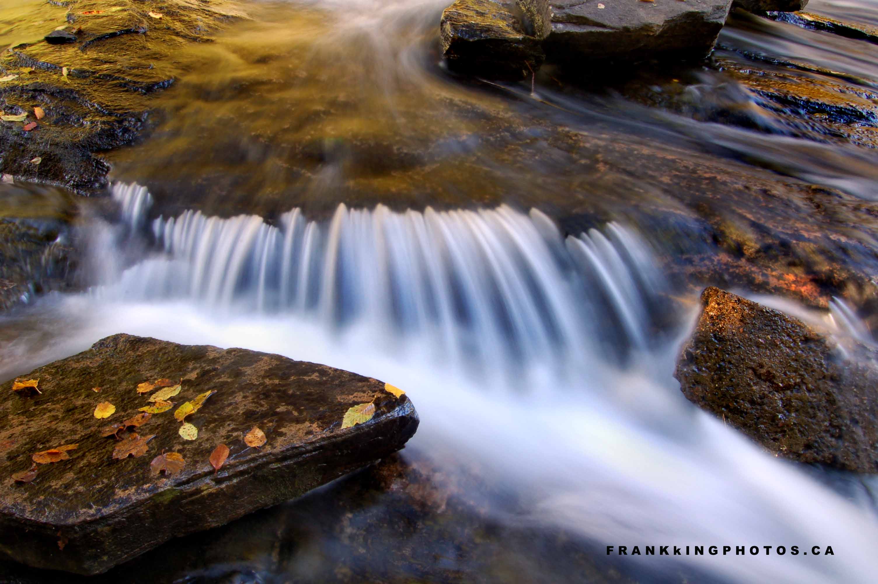 This isn’t one of those spectacular waterfalls; it’s a tumbling waterway, northeast of Toronto, that was once used to transport fallen logs. Now it’s a place for restful walks and enjoying the autumn colours reflected in the water. Nikon D50, tripod, polarizing filter.