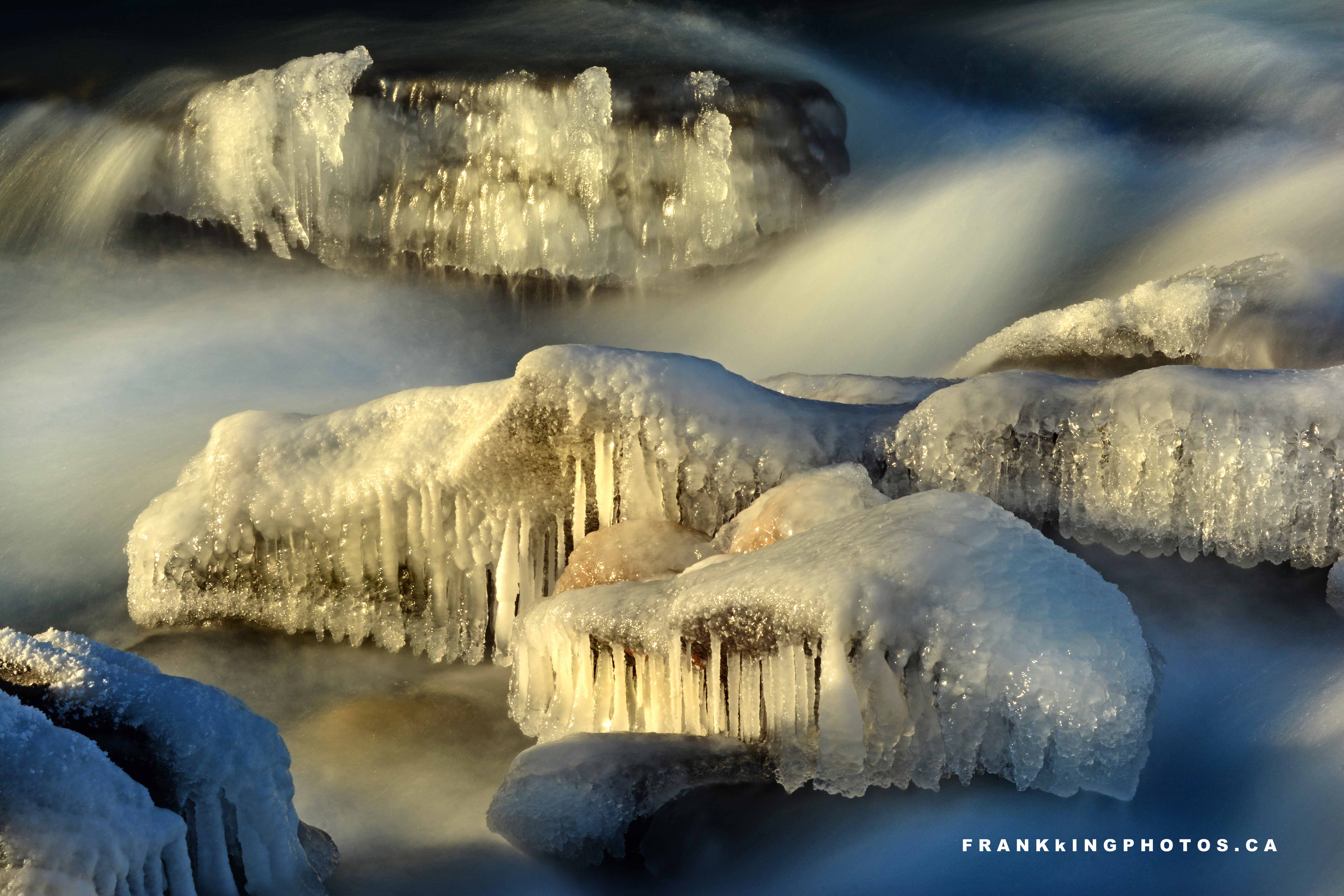 I was blessed with warm early-morning light streaking across this river in the Canadian Rocky Mountains. Screwing on a polarizing filter, plus two neutral density (darkening) filters, reduced the light enough for me to get a long exposure and turn the churning, ice-cold water into a silky flow. Nikon D7100, tripod.