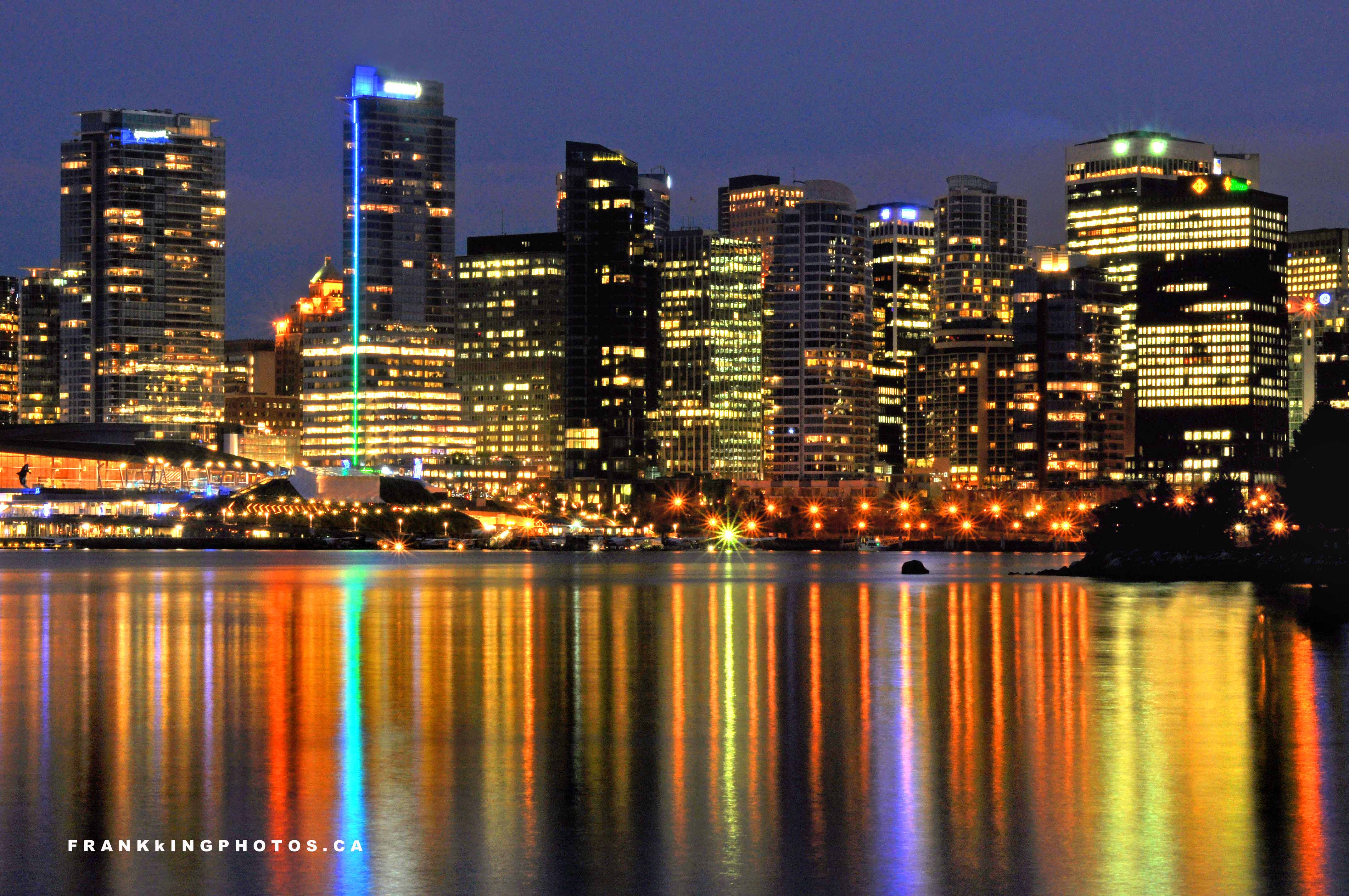 Photographed from nearby Stanley Park, I was blessed to have relatively still water in Coal Harbour to make this picture. (Here’s another Vancouver skyline photo made the same evening: http://wp.me/p2ccTX-6z.) Vancouver is consistently ranked one of the most beautiful cities in the world. I agree.