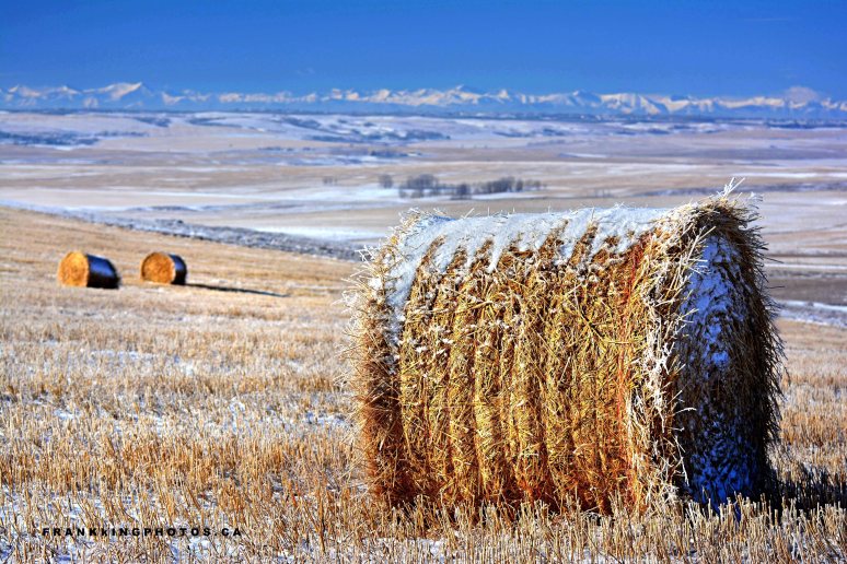 I’m constantly amazed that I live within a 10-minute drive of scenes like this, which are etched in the consciousness of Canadians when they think of western Canada. I went with a shallow depth of field so the focus would be on the near hayroll, yet all the background is still sharp enough to let your imagination roam through it, starting with the distant hayrolls (which serve as a secondary point of visual interest).