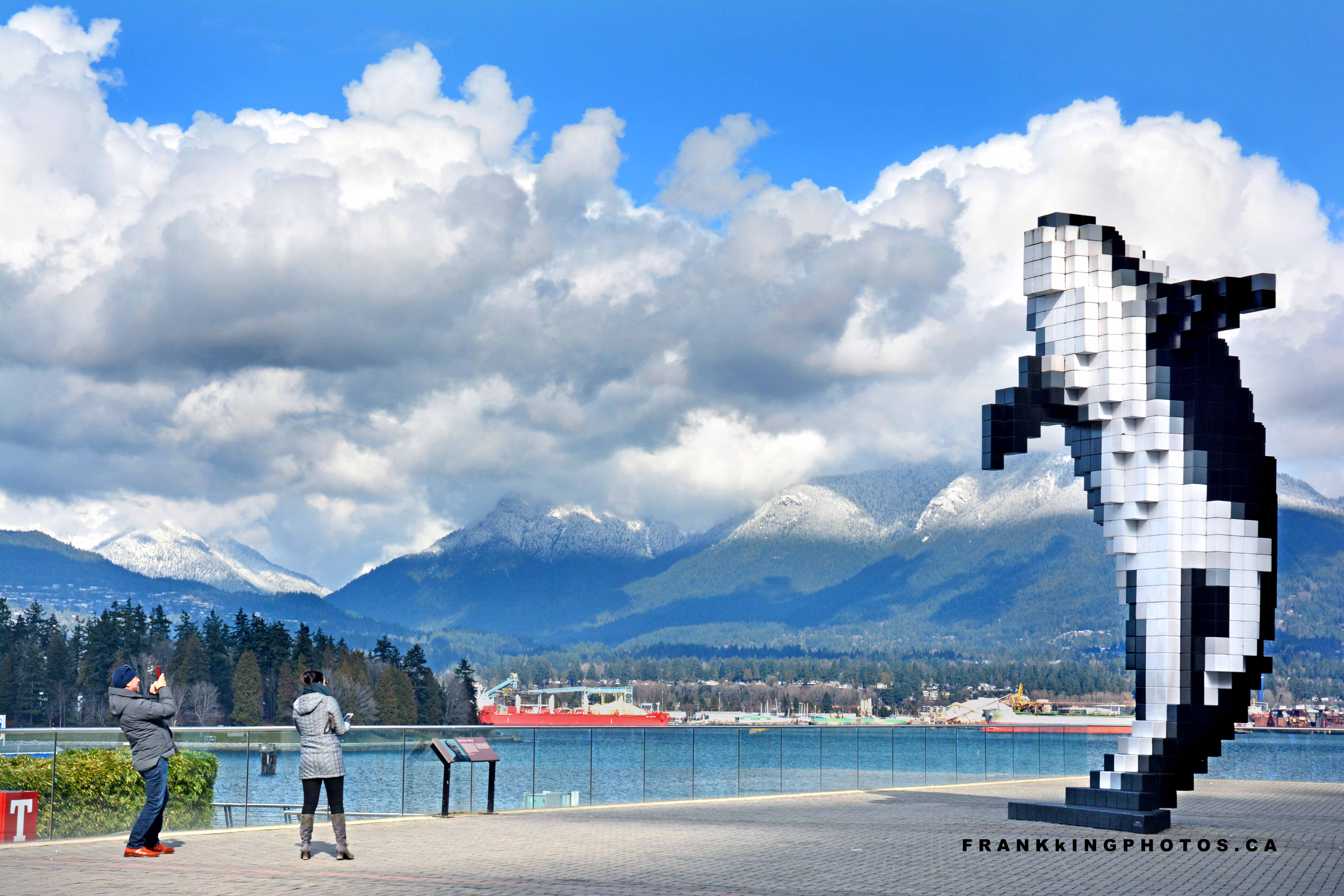 TOURISTS AND ORCA WHALE STATUE, VANCOUVER, BRITISH COLUMBIA