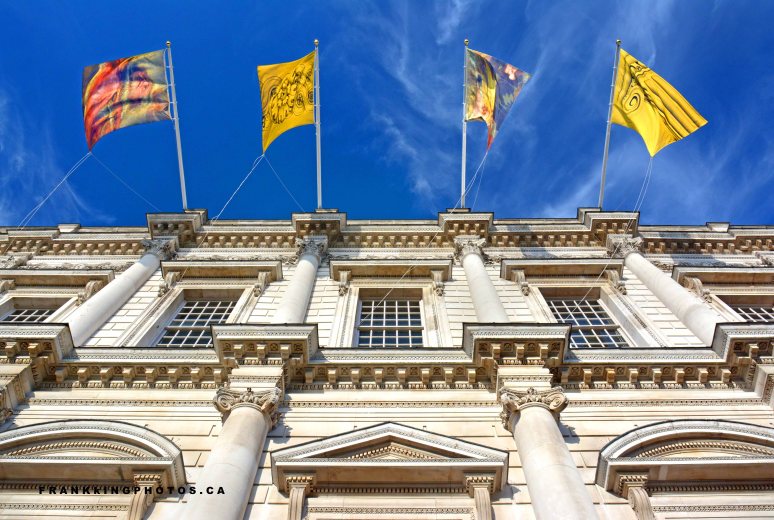 FLAGS ON GOVERNMENT BUILDING, LONDON, ENGLAND