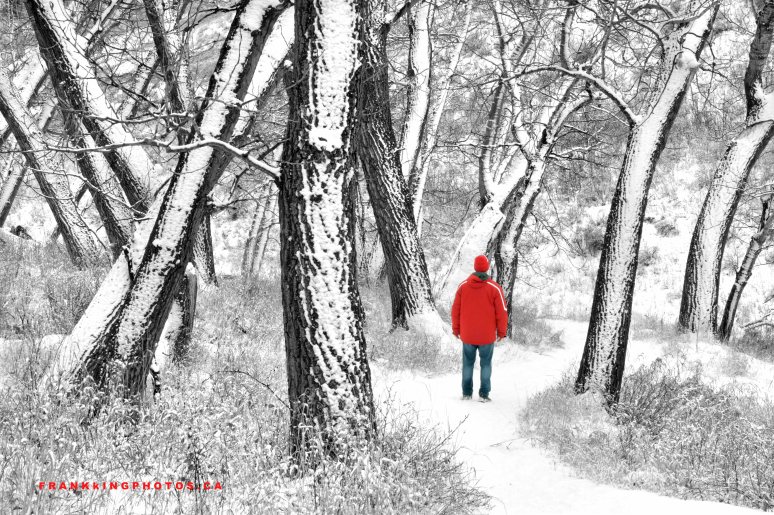 Wonderful photo, Frank, the snowy path and bright red coat are a great contrast. Enjoyed hearing how you accomplished this work of art.