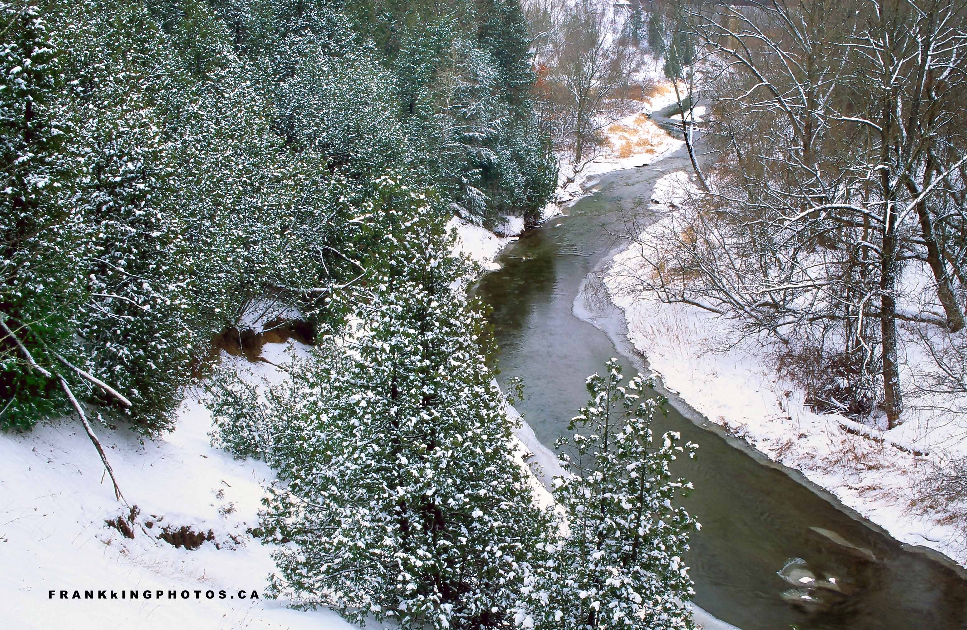 A high vantage point enabled me to capture the creek as it flowed south out of Greenwood Conservation Area east of Toronto, Canada’s largest city. I did a lot of manoeuvring to keep the distracting grey sky out of the photo.