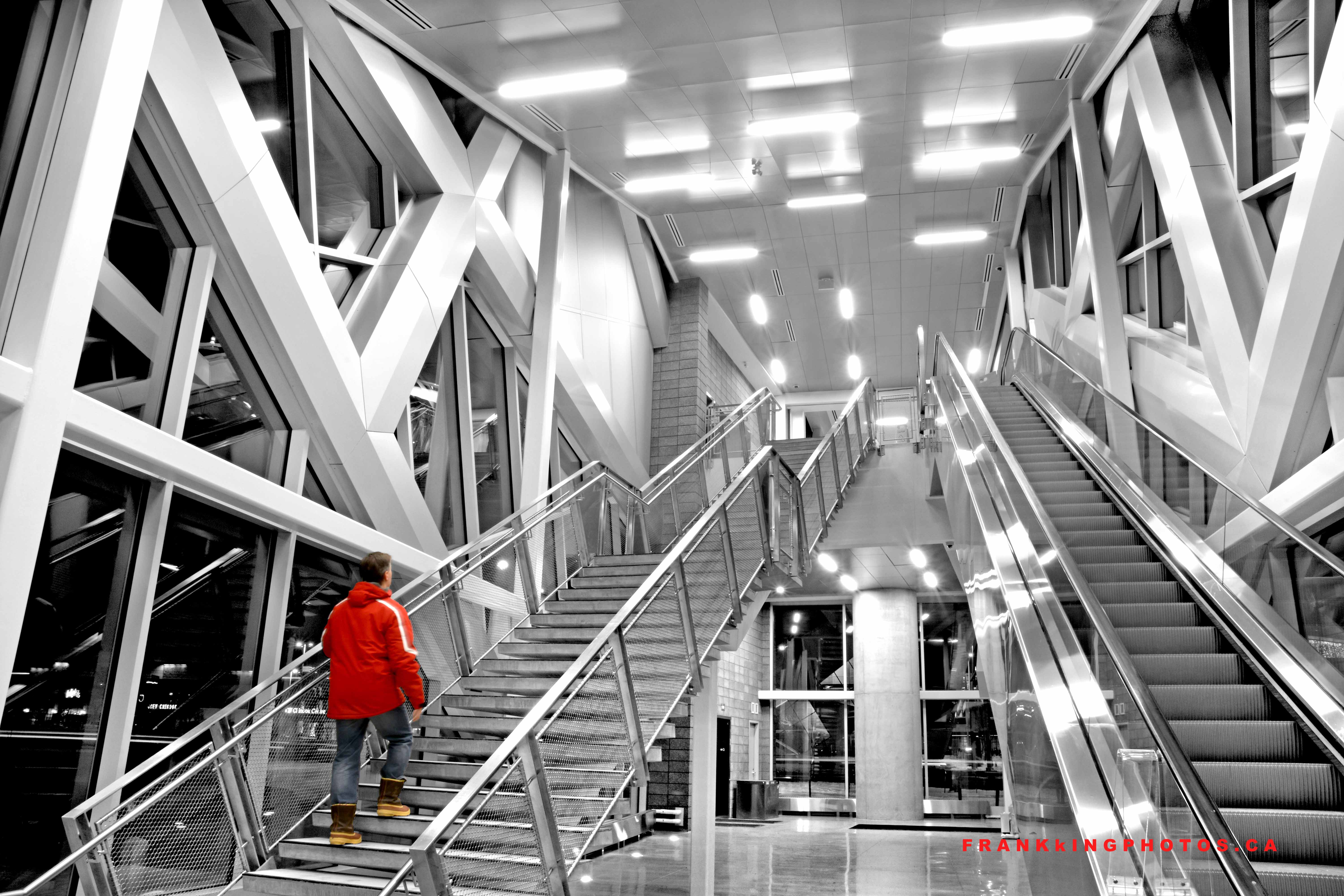 The entry is mostly monotone, so I decided to add me (and my red Calgary Stampeders coat) to the scene, then keep me in colour and convert the rest of the scene to black-and-white. I’ve used this processing technique before (see https://wp.me/p2ccTX-10P and https://wp.me/p2ccTX-10Y) and like the results.