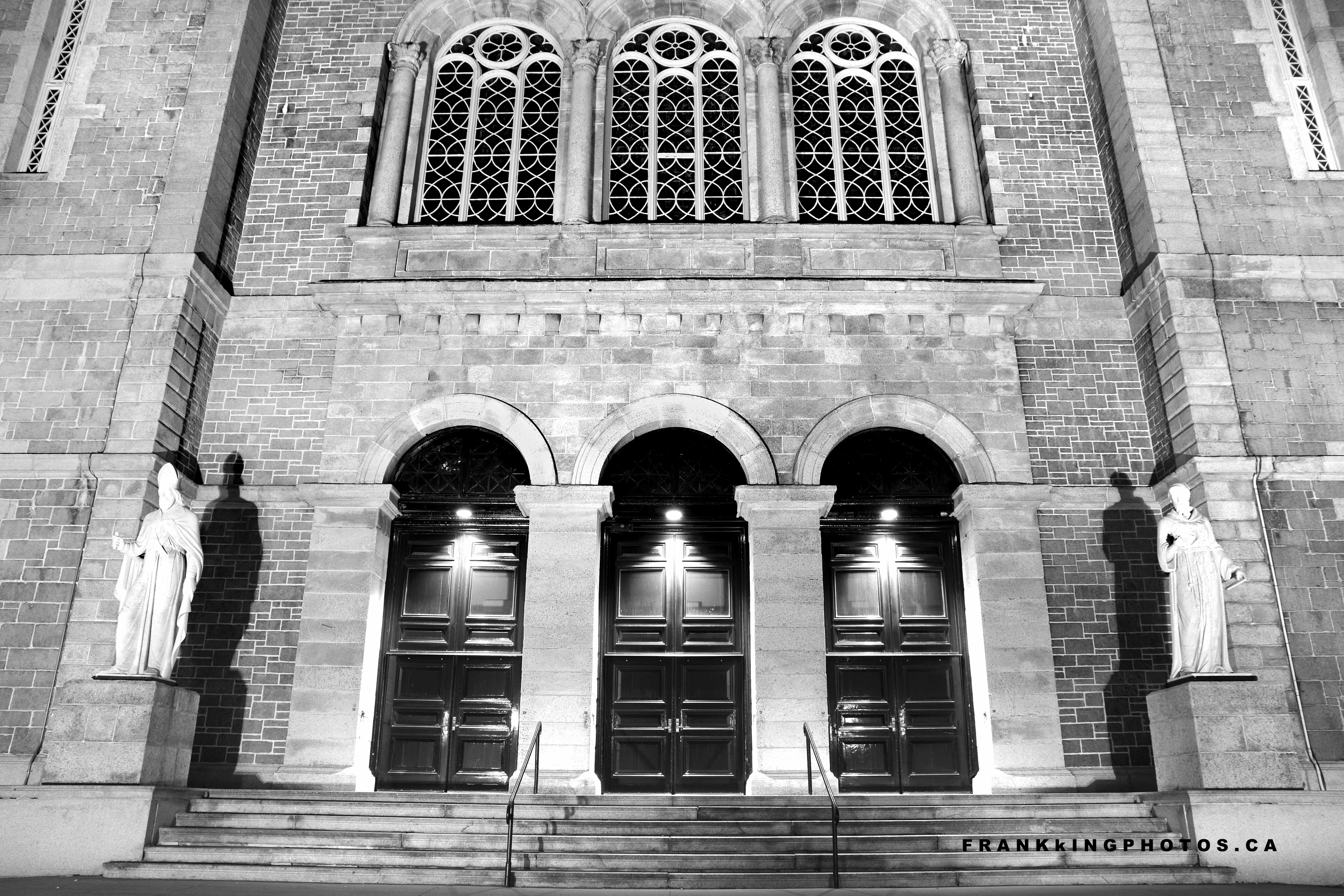 During a business trip to this eastern Canadian province I made sure to make two stops at this glorious church in St. John’s. The first, in daylight, captured the splendid interior. When I realized the exterior was lit at night, I came back to make pictures like this, knowing the illumination would be far more dramatic. I also went with black-and-white, since there was almost no colour to be had.