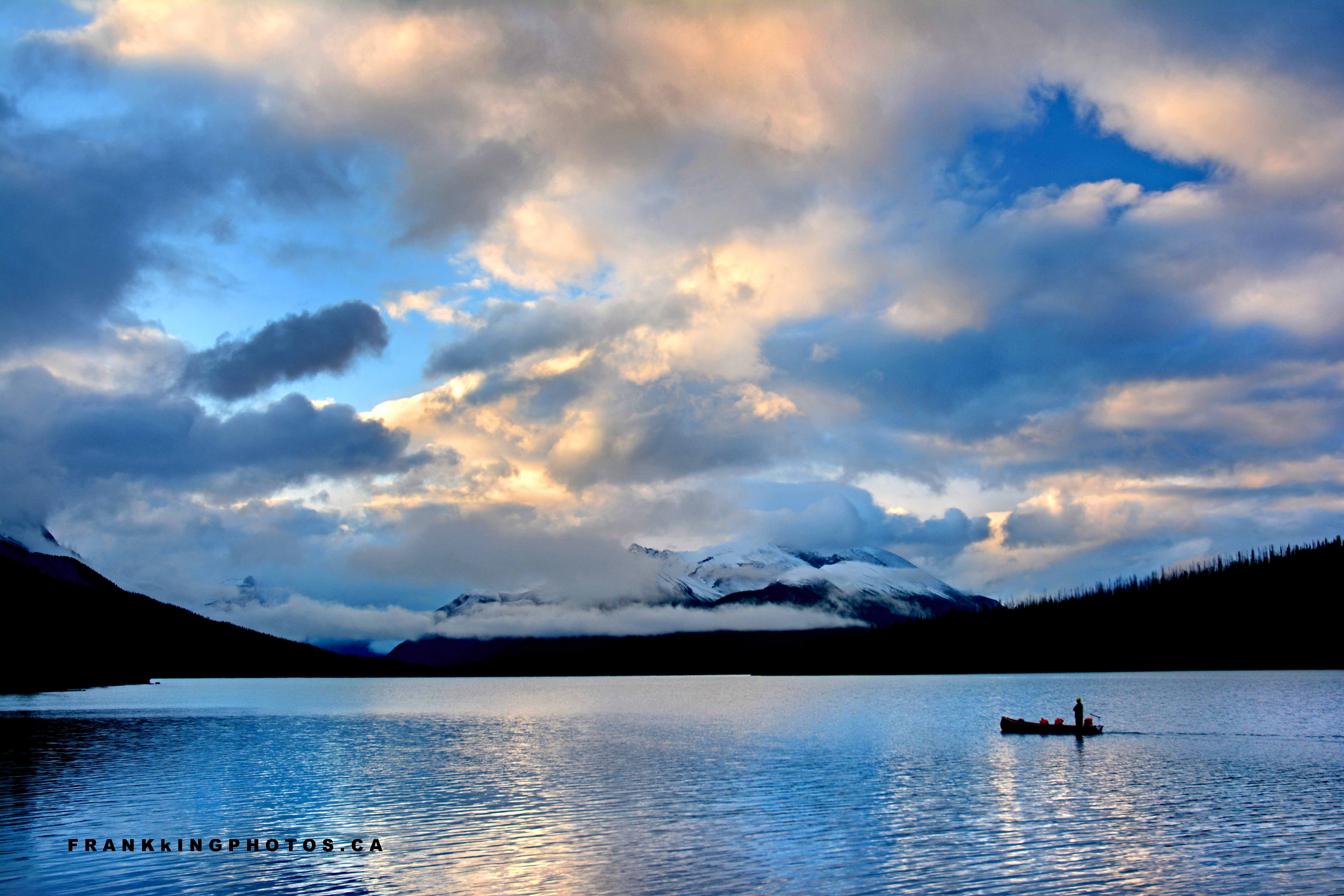 FISHING ON MALIGNE LAKE, JASPER NATIONAL PARK, ALBERTA
