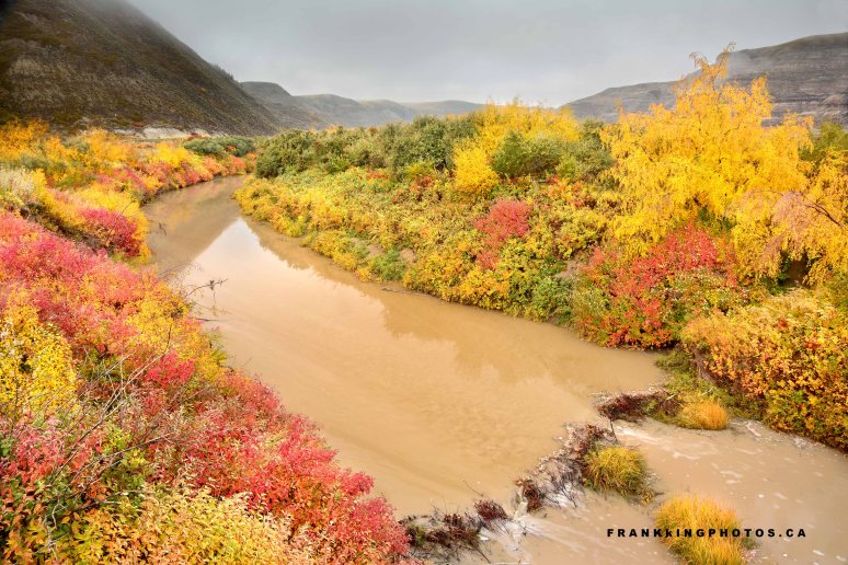 I was blessed to visit this badlands region of western Canada right at the peak of autumn. The day started foggy, but I was still able to capture the colours flanking the creek as it approached a bridge on Hwy. 575.