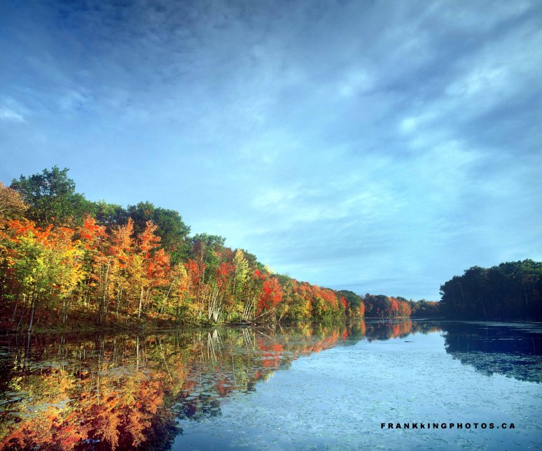 A fishing expedition into the archives landed this beauty from 2000. After 10 years in Alberta, I was back in Ontario and determined to find compelling nature photos in a sea of dreary suburbia. Terra Cotta Conservation Area, west of Toronto, turned out to be a charming place with a big lake and excellent fall colours.