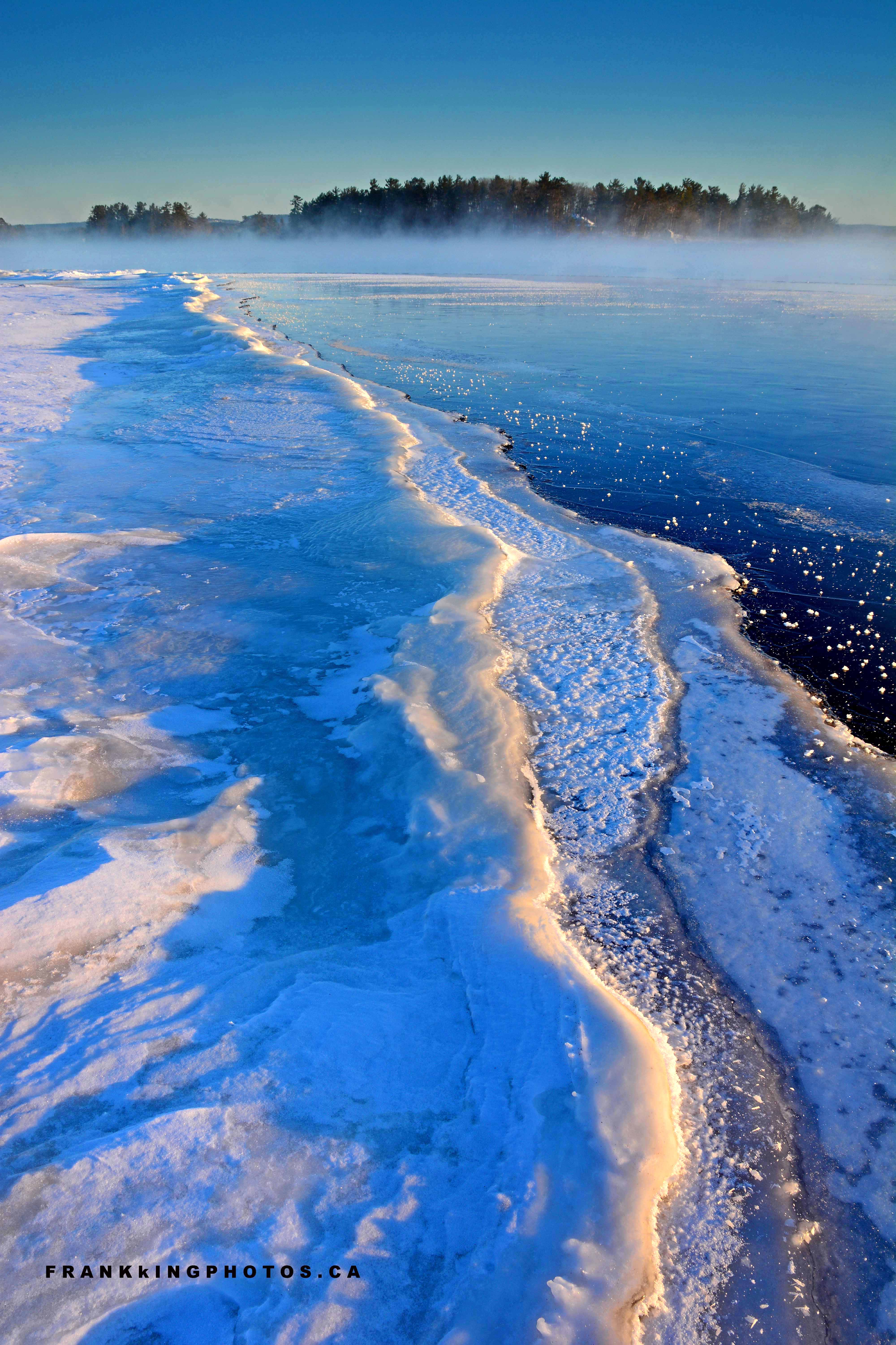 In this case, I loved the ragged line of light formed by ice, and how it leads your eyes to fog over the open water.