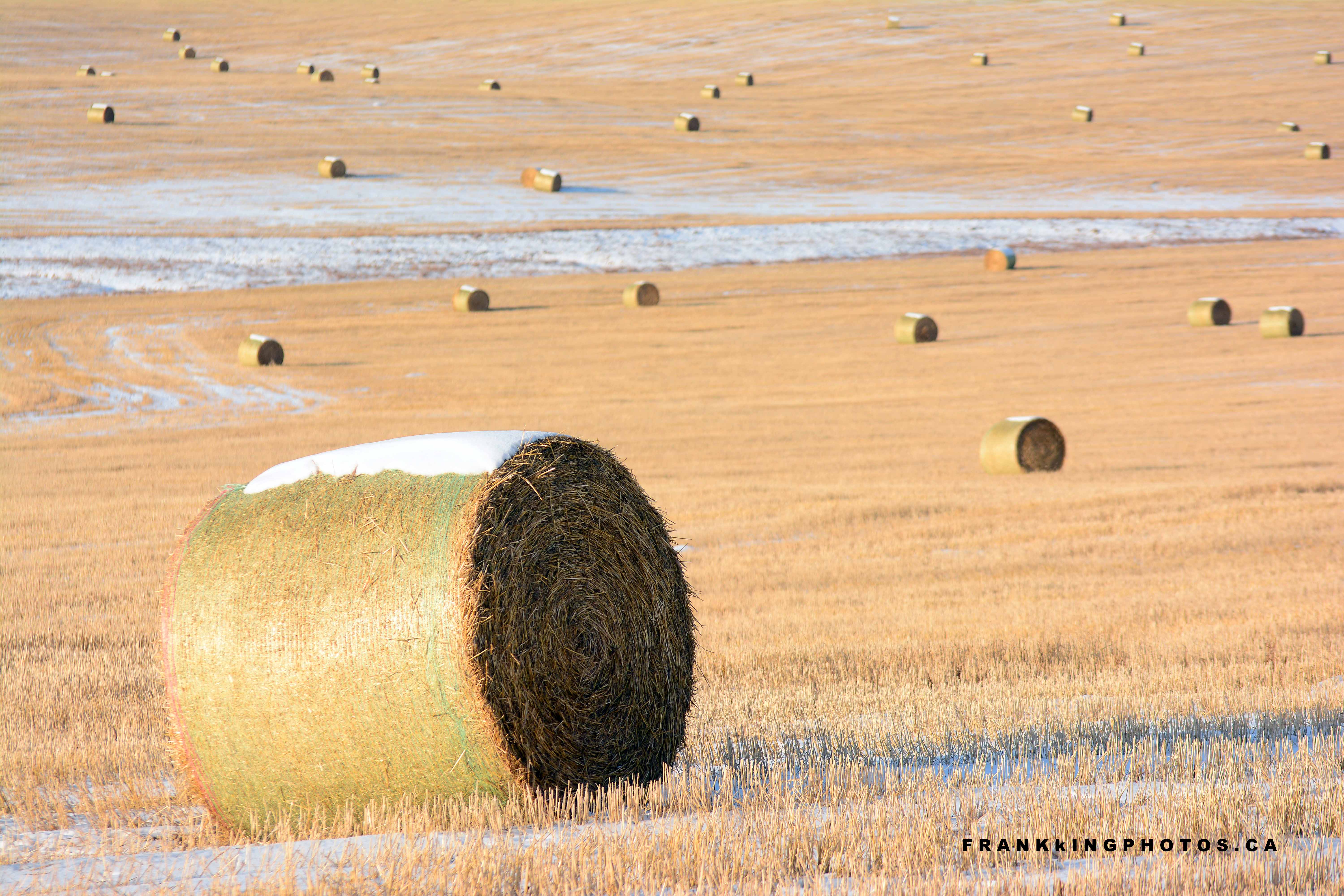 Anyone who follows this website knows I’m a sucker for hay rolls. Their perfectly cylindrical shape adds so much artistic order to prairie fields. They also give your eyes easy places upon which to rest; you can even wander through the scene by going from one roll to another.