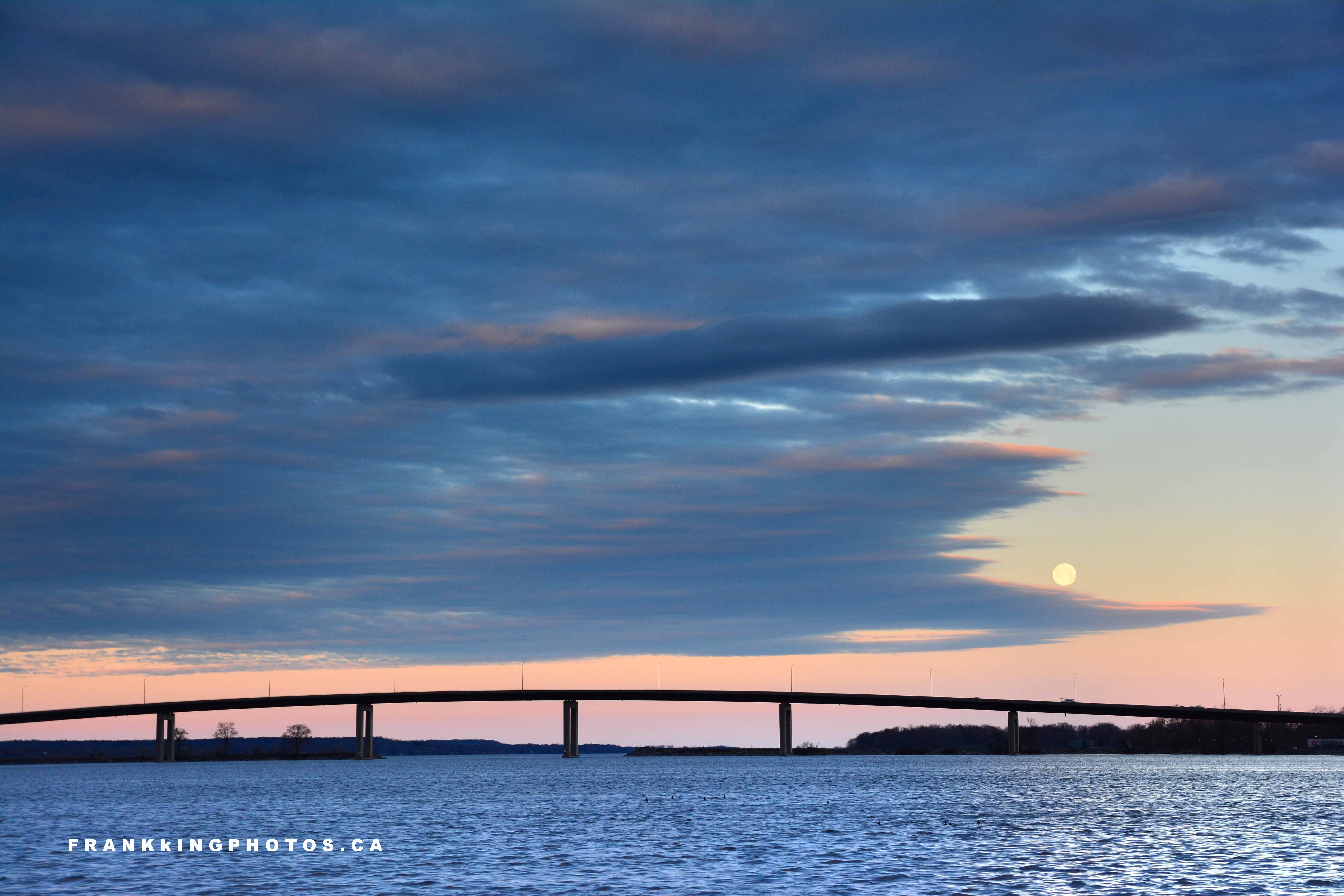 SETTING MOON OVER BELLEVILLE BAY BRIDGE, ONTARIO