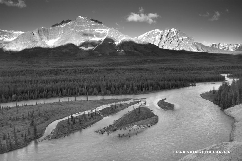 ATHABASCA RIVER AND PEAKS, JASPER NATIONAL PARK, ALBERTA