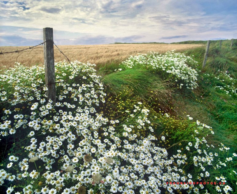 DAISIES AND FARMER’S FIELD, NEAR HOOK HEAD, COUNTY WEXFORD, IRISH REPUBLIC