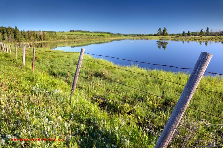 FENCE AND POND WEST OF CALGARY, ALBERTA