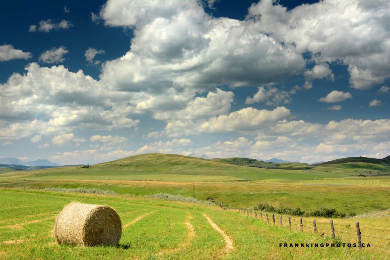 HAY ROLL AND CLOUDS NEAR LONGVIEW, ALBERTA
