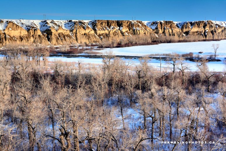 I went exploring in this tiny hamlet (population: 130) near Lethbridge because I sensed there would be good views of the river valley. Turns out I was right. The beautifully lit trees just below me provided a good counterpoint to the distant badland cliffs.