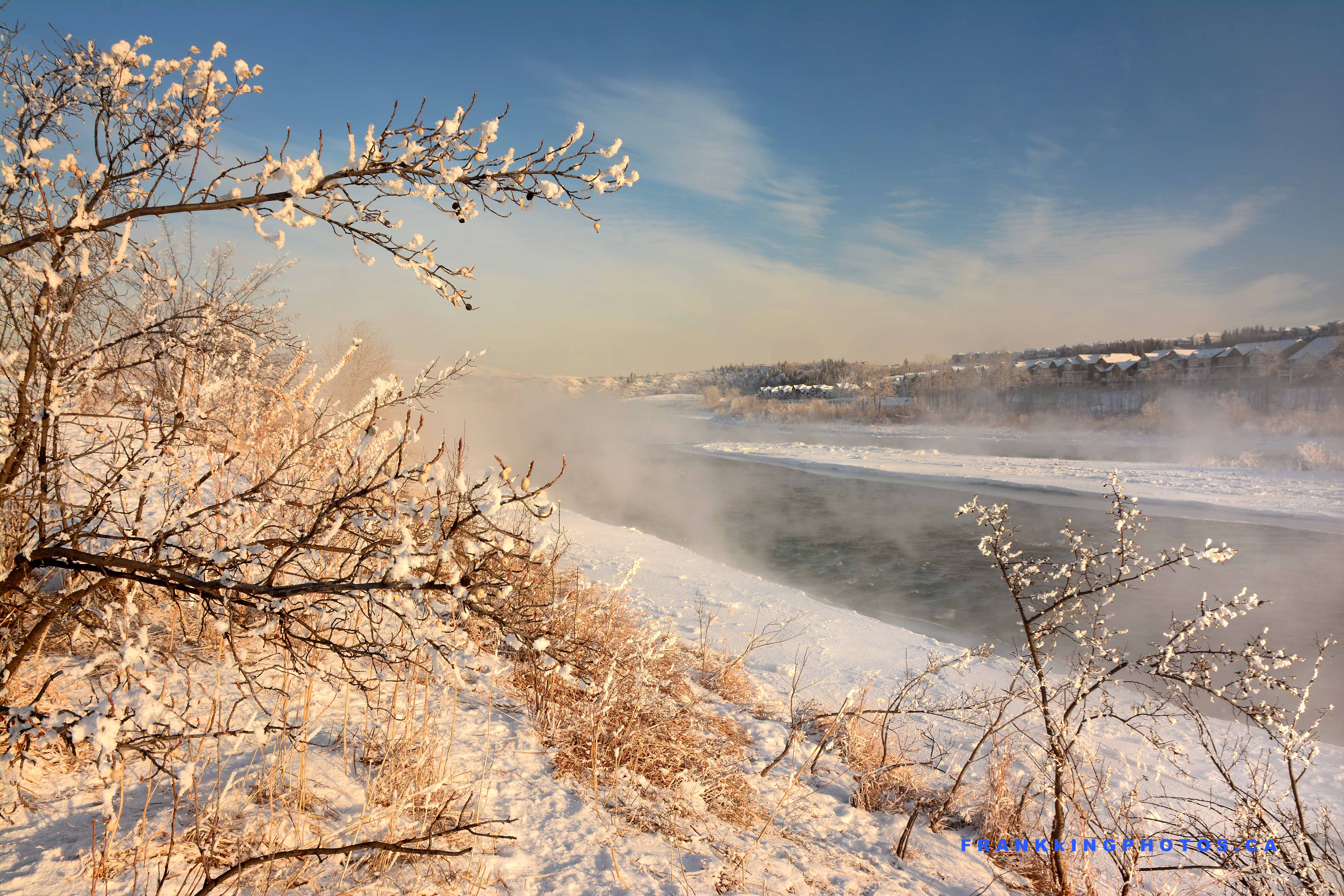 DEEP FREEZE FOG ON THE BOW RIVER, COCHRANE, ALBERTA