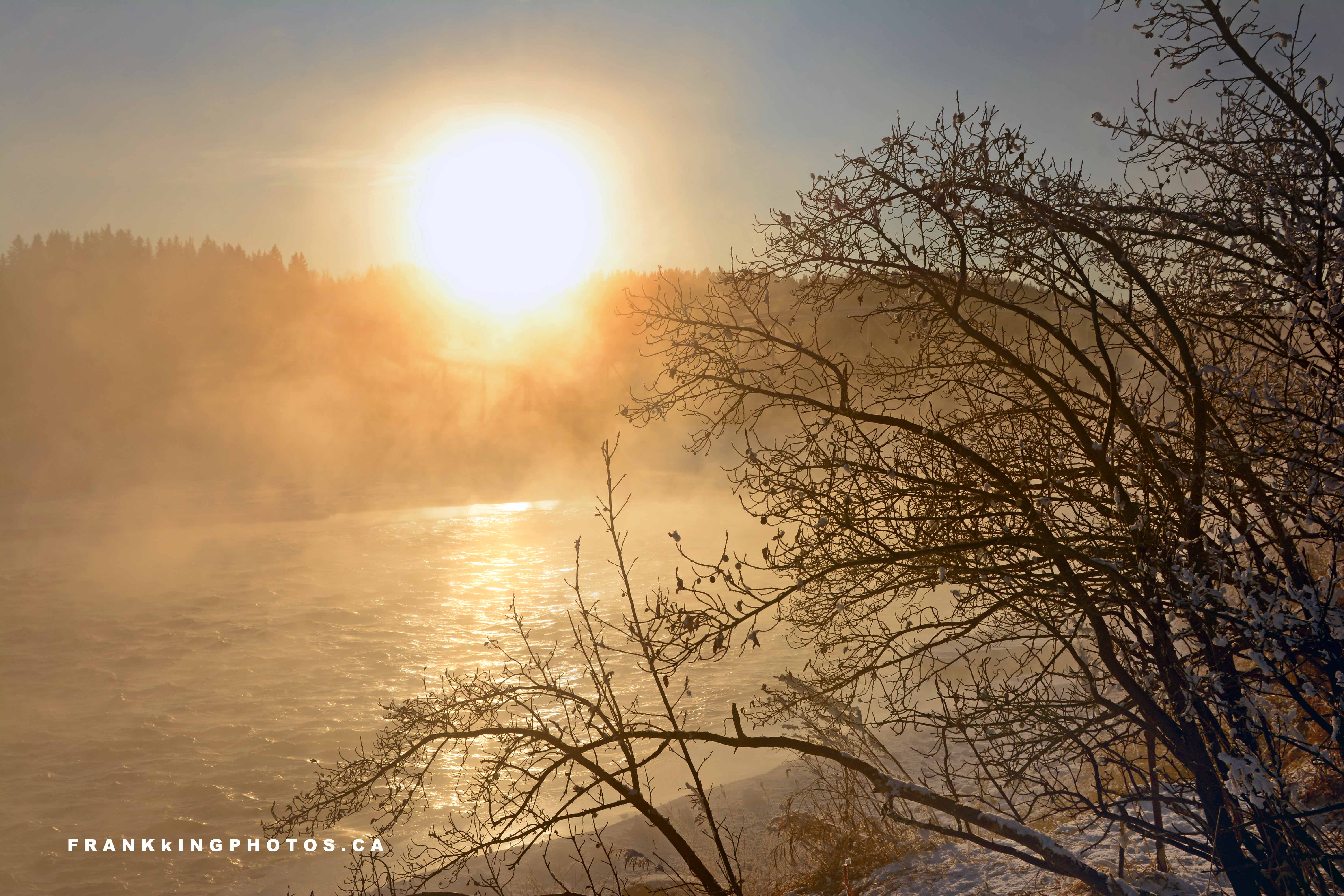 BOW RIVER AND WINTER FOG, COCHRANE, ALBERTA
