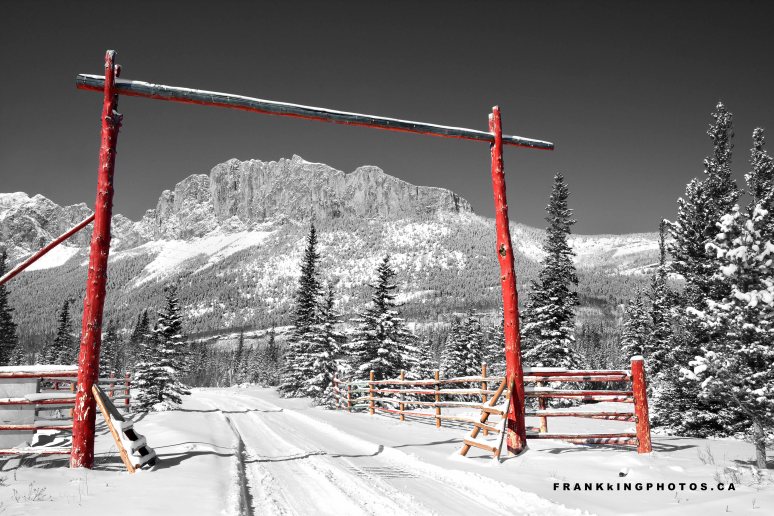 As I made this picture, I knew I’d process a version with the fence and entry in colour, while the rest of the photo is turned into black-and-white. The result is striking, isn’t it? 🙂 Here’s the full colour version: http://bit.ly/RockiesView.