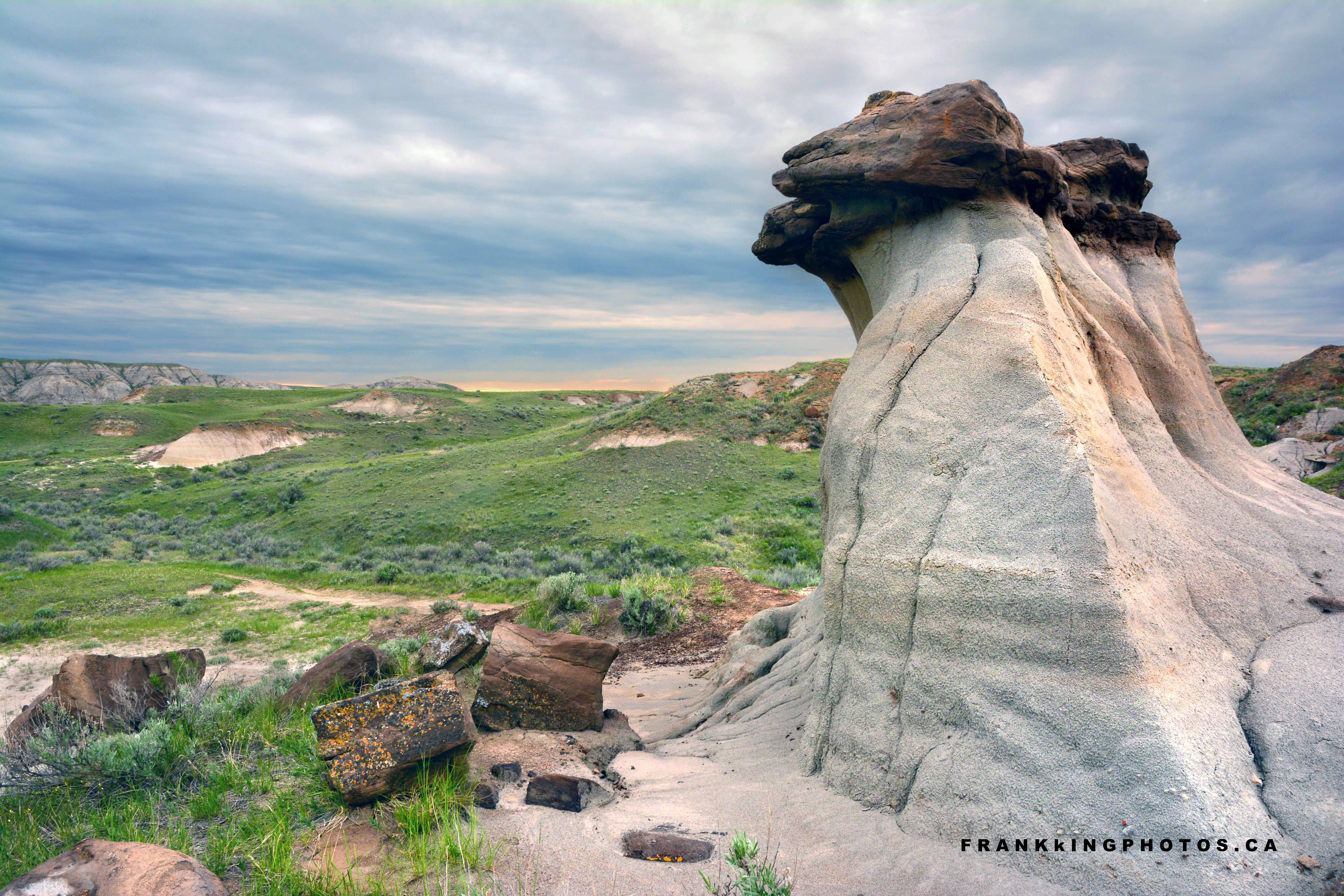 I drove more than two hours from my Calgary home in hopes of capturing sunrise light at this UNESCO World Heritage Site. As you can see, my hopes were in vain. So I made the best of the situation, finding landscapes like this and using Photoshop to darken the cloudy sky.