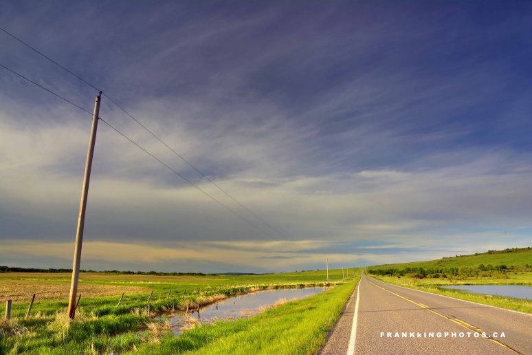 I was up and on the road for sunrise (which, at this time of year, is about 5:30 a.m.), but there were too many clouds. Fortunately, conditions cleared enough that when I found this scene, the light was good and the sky was interesting. Later that day, parts of Calgary were pummeled by the worst hailstorm in many years.