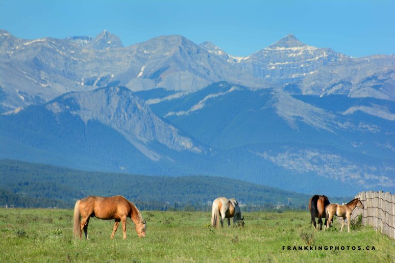 These horses grabbed my attention as I drove along Hwy. 1A west of Cochrane. They were far enough way that I could use a telephoto lens to draw them closer and, just as important, make the distant Rocky Mountains appear dramatically close.