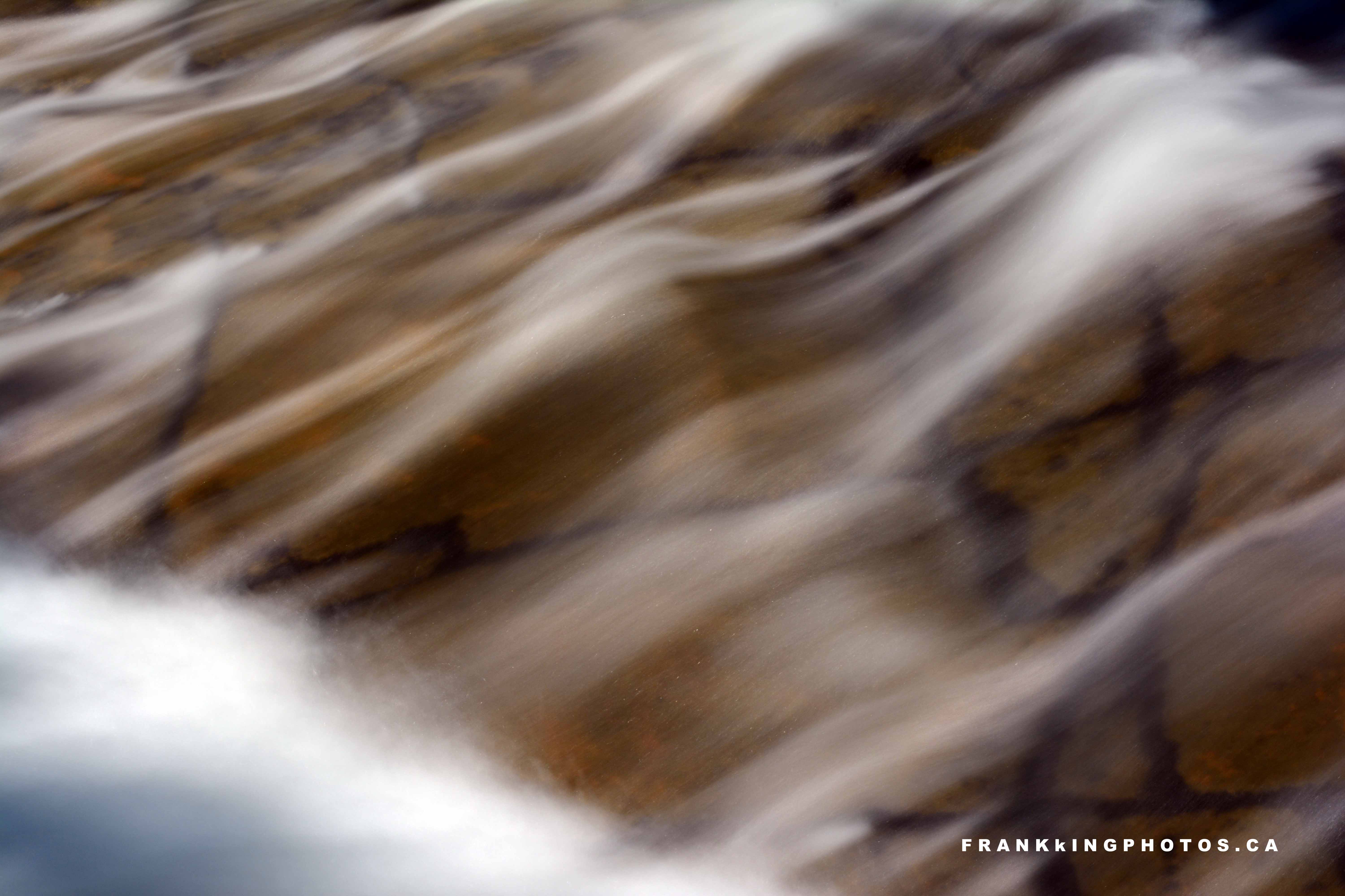 Livingstone River flows down a wide, flat Rocky Mountain incline that creates all kinds of photo possibilities. By going for a long exposure, I turned the fast flow into silken, diagonal lines. The result is a surreal picture which puts artistry ahead of literal reality.