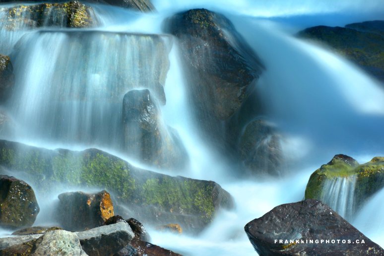 Where the Kicking Horse and Yoho rivers meet in the Canadian Rockies is called the Meeting Of The Waters. As the former prepares to join the latter, it crashed down a series of boulders, creating a spectacle of photogenic cascades.