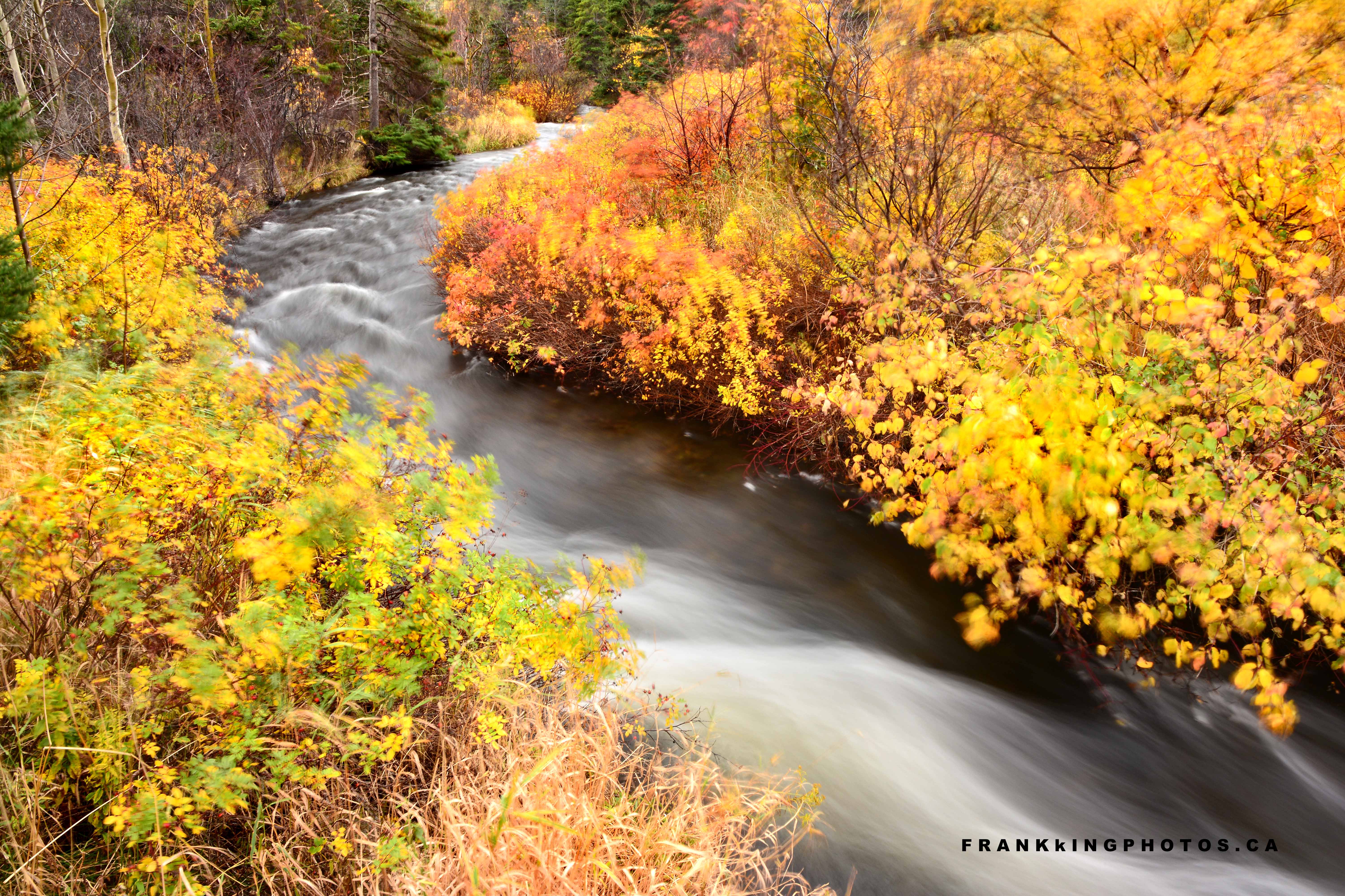I wanted to soften the flow of the creek through a long exposure, but the weather on that day in 2018 was so windy that I couldn’t freeze the movement of the shrubs and trees. But no matter; I got the silky water I wanted and the blurry leaves add a very different, almost surreal, touch to the scene.