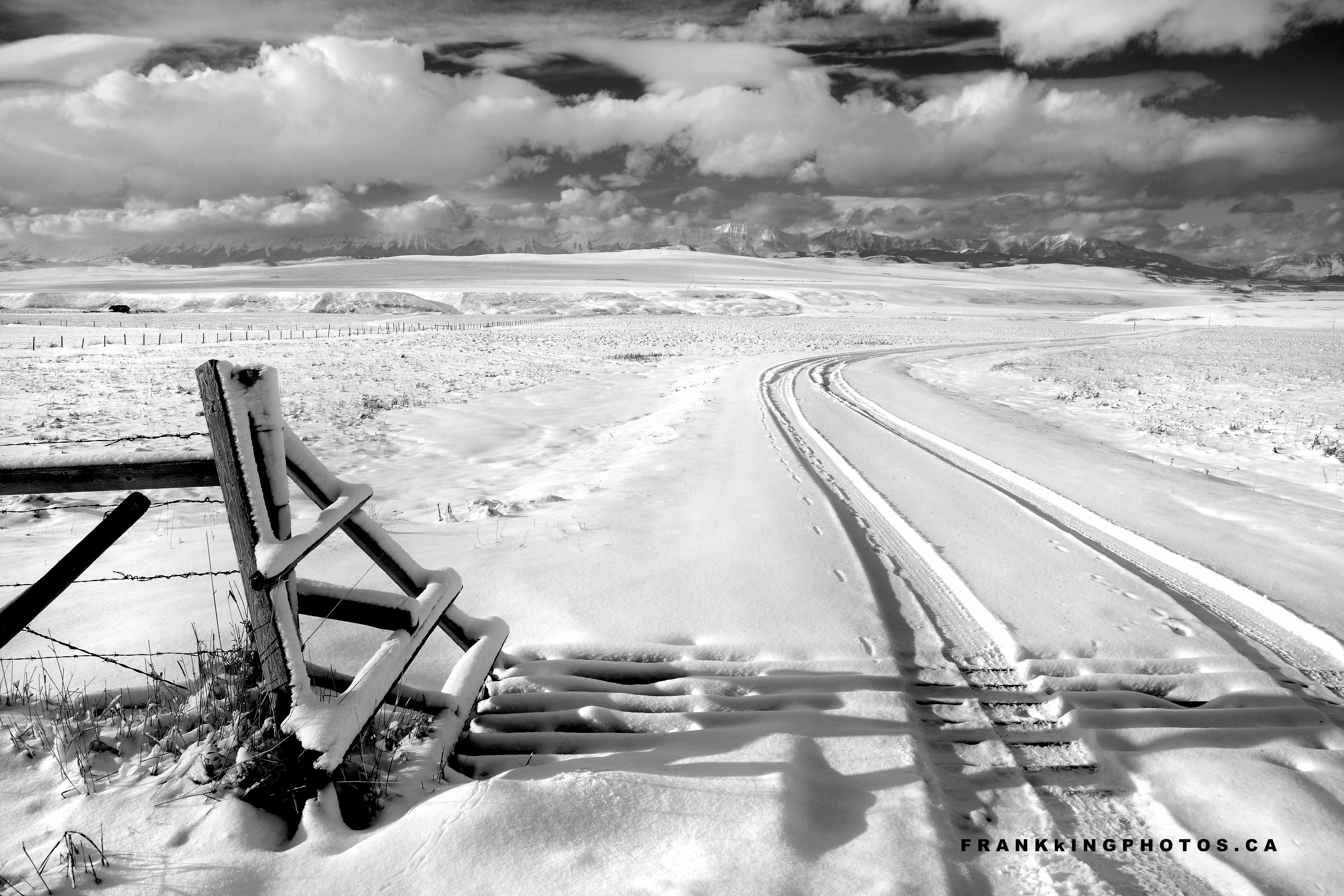 The colour version is nice (you can see it here: https://bit.ly/CowboyTrailWinter) but as is so often the case with winter pictures, the black-and-white version has far more drama.