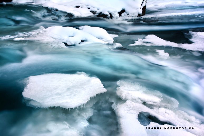 Ice and flowing water usually makes for a photogenic combination and as you can see, this spot in the Canadian Rocky Mountains was no exception. I went for a long exposure to turn the river silky and help guide your eyes through what would have otherwise been a chaotic scene.
