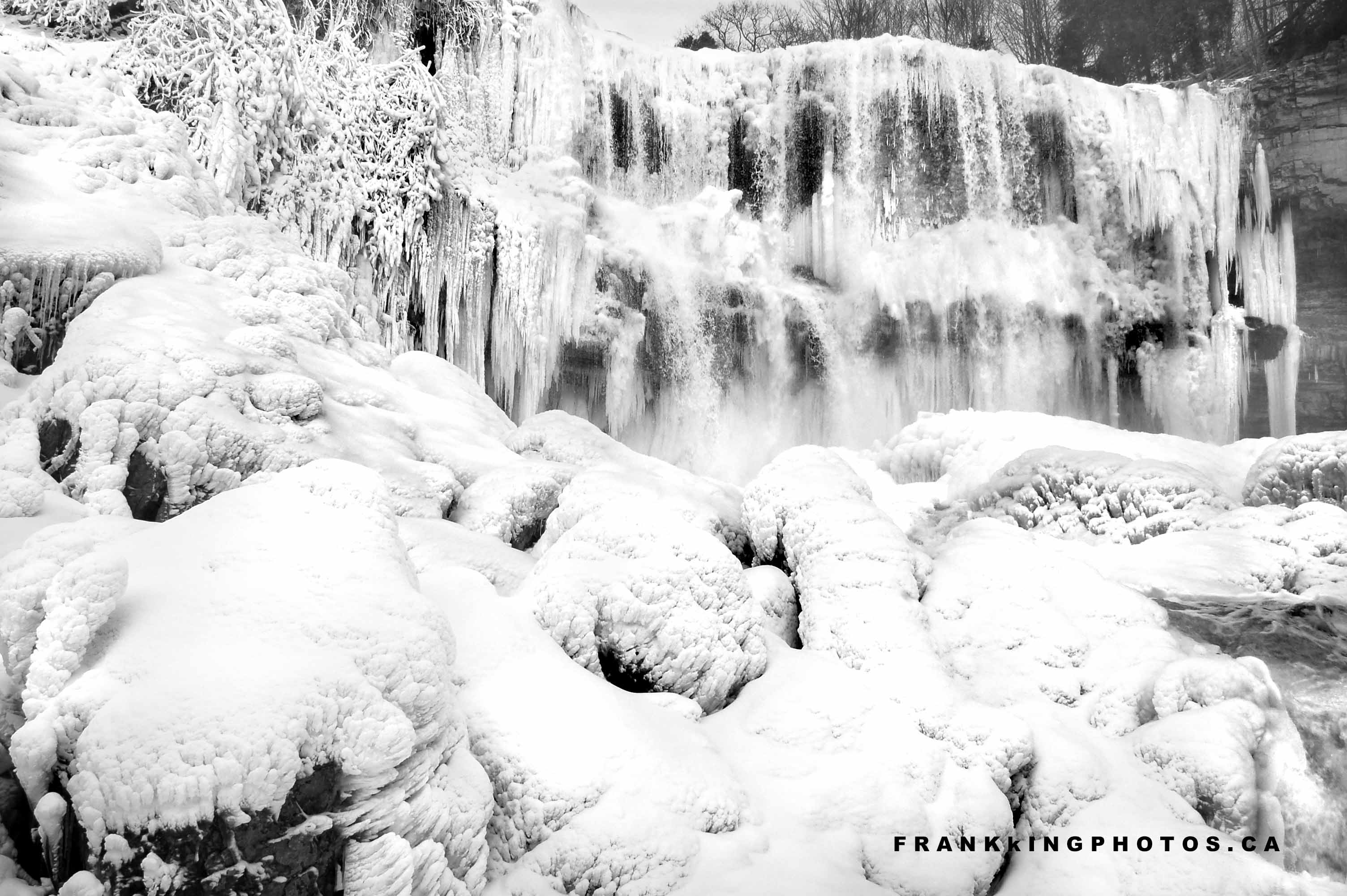 I dug around in the archives and came up with this photograph, made way back in 2008 when it was still possible to access the bottom of the falls. I was blown away by the fantastical ice and snow formations (here they are from above: https://wp.me/p2ccTX-An) and spent a lot of time exploring them.