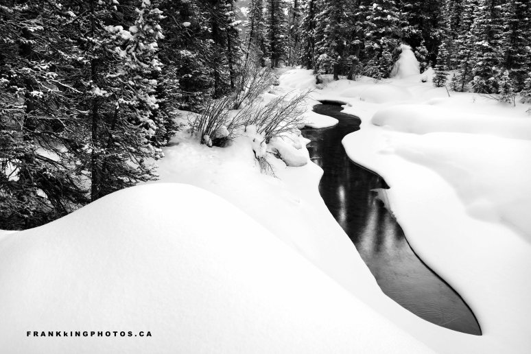 The lines in this photo are absolutely stunning, Frank. I so love that curvaceous black water in the midst of this snowy scene.