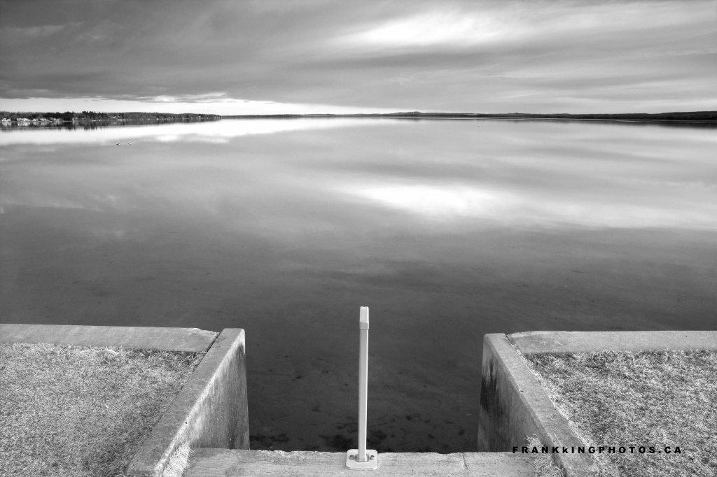 I wasn’t able to get to this resort lake, about 90 minutes’ drive from my home in Calgary, in time to photograph sunrise. But I’m pretty happy with how these cool clouds and a surprising lack of wind resulted in several “keeper” images. The colour version is really nice (you can see it here: http://bit.ly/SylvanLakeClouds), but even as I made the picture, I knew it would also make a compelling monotone image. Nikon D7100, tripod, polarizing filter, graduated density (darkening) filter on the sky.