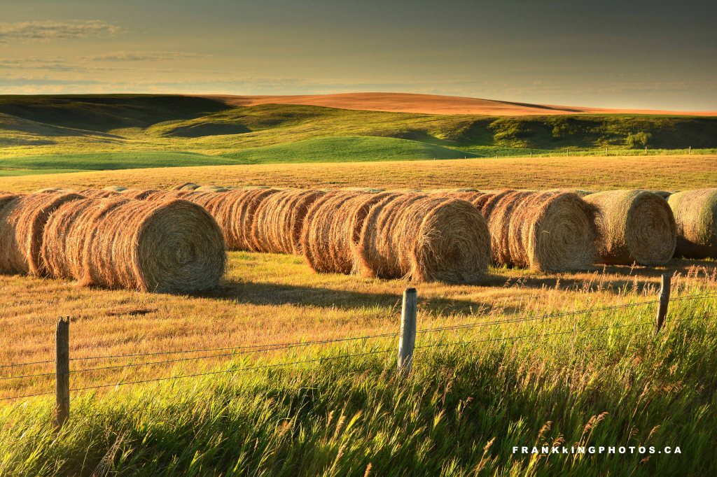 HAY ROLLS IN EARLY MORNING LIGHT, NEAR CALGARY, ALBERTA