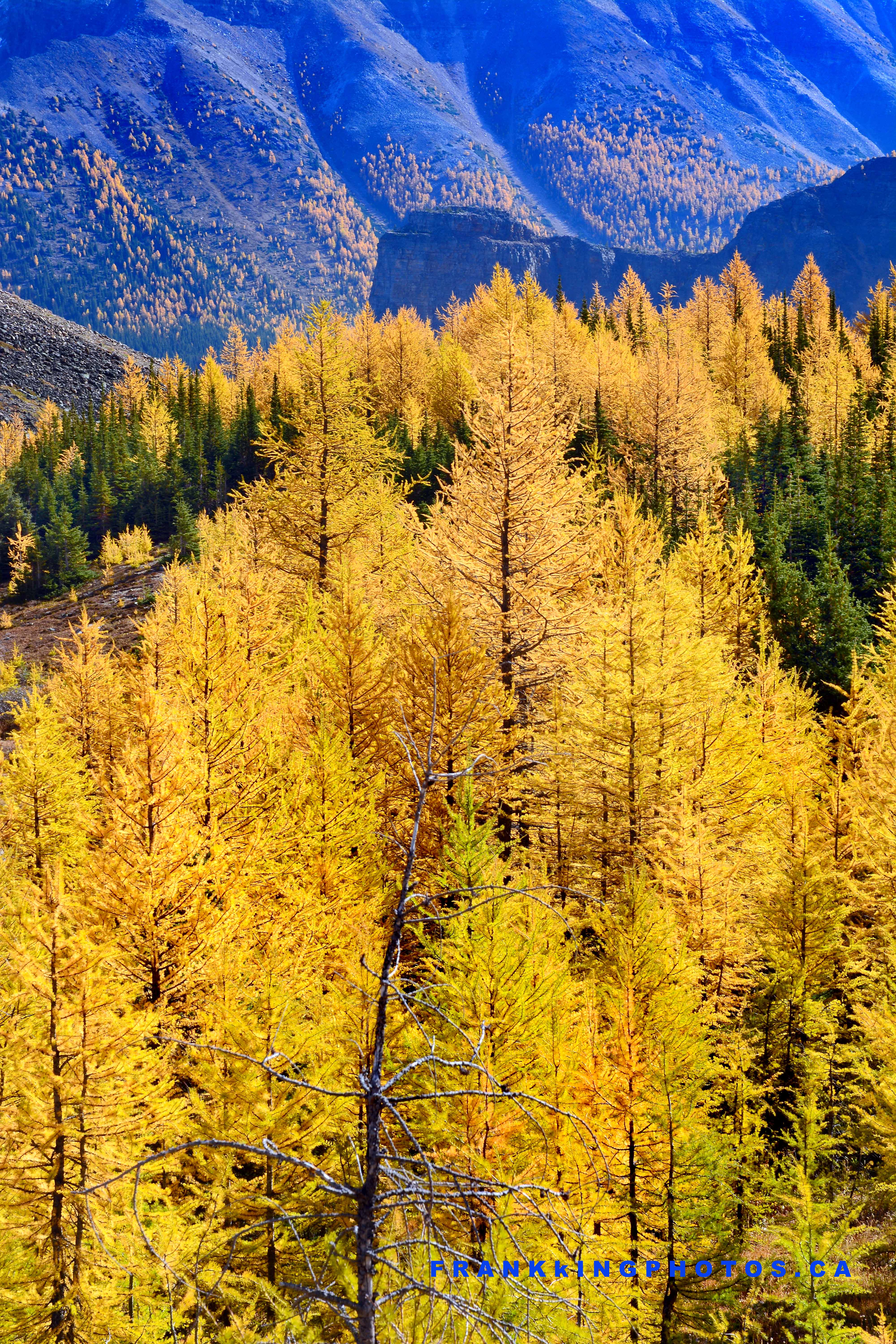 This place – a nine-kilometre return hike from the parking lot – is justifiably one of the most popular autumn hikes in the Canadian Rocky Mountains. Once you arrive (a challenging 500-metre climb with many switchbacks), you’re greated by thousands of flourescent yellow/orange larches. Normally green, they change colour and then drop their needles each fall.