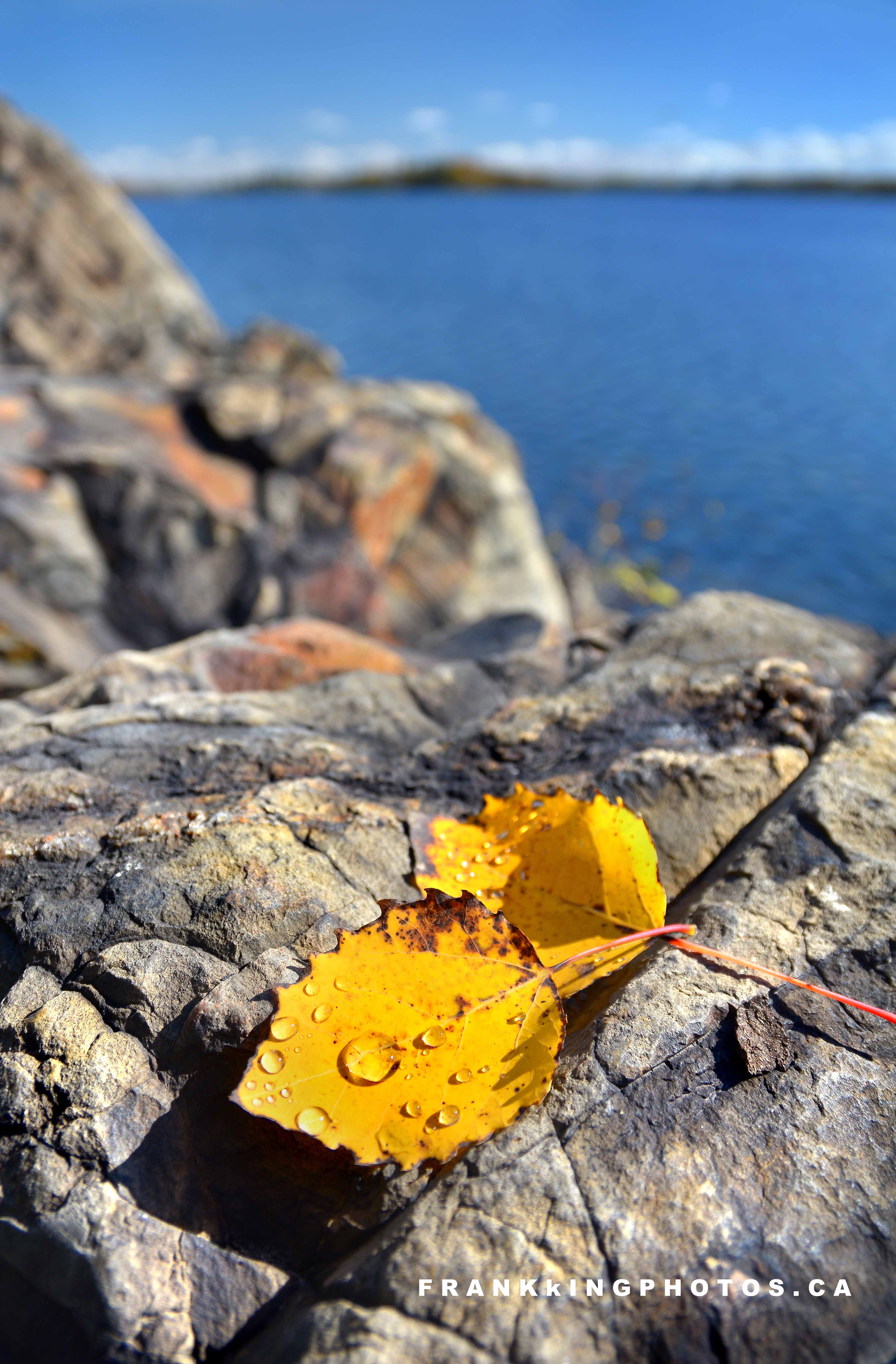 While in this city on a work trip, a colleague and I visited Ramsay Lake, one of 30 lakes surrounding Sudbury, and found all sorts of colourful leaves with water drops.