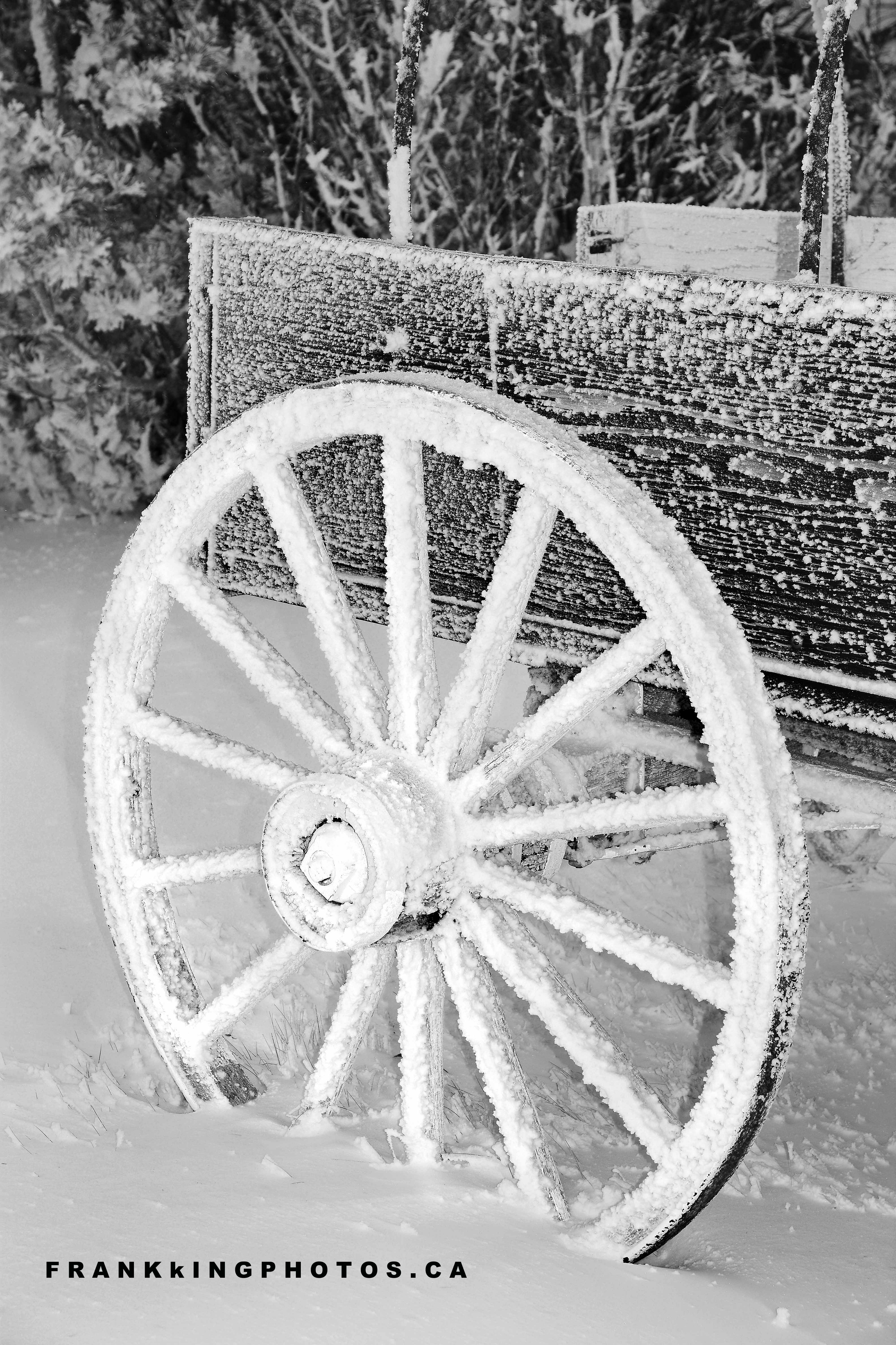 Yes, it was absolutely as cold as it looked — in fact it was -25C with a wind chill that made it feel like -30. Thankfully, this wonderful old wagon was right by the road, so I barely had to walk 10 feet to quickly make several pictures. This is one of the best, in part because it doesn’t show any of the very modern house in the background. Going black-and-white was a no-brainer; there was almost no colour in this scene.